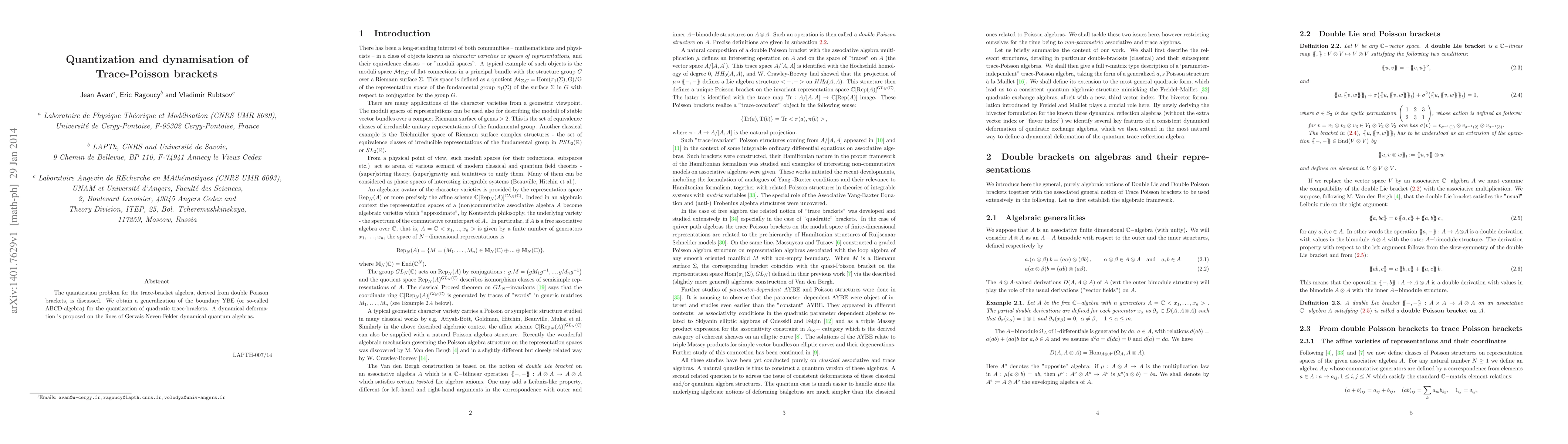 The quantization problem for the trace-bracket algebra, derived from double Poisson brackets, is discussed. We obtain a generalization of the boundary YBE (or so-called ABCD-algebra) for the quantization of quadratic trace-brackets. A dynamical deformation is proposed on the lines of Gervais-Neveu-Felder dynamical quantum algebras.