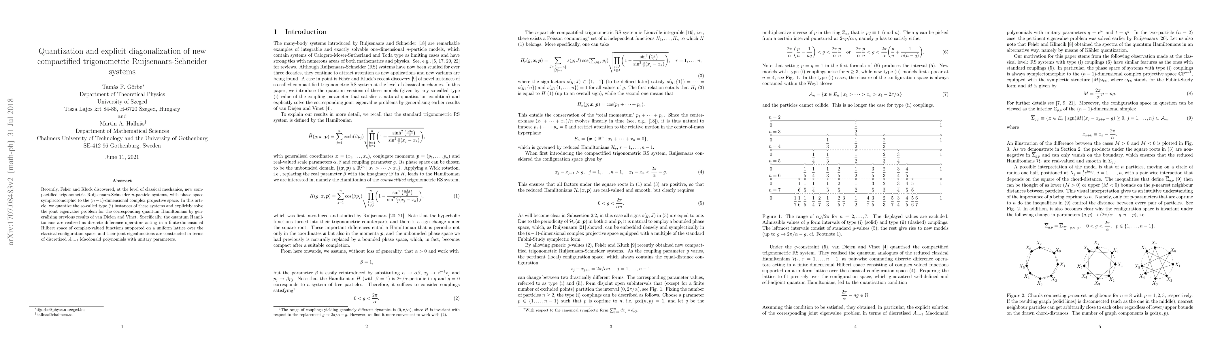 Researchers quantized a new type of compactified trigonometric Ruijsenaars-Schneider system, solving the joint eigenvalue problem using discrete difference operators and discretized A_n Macdonald polynomials.