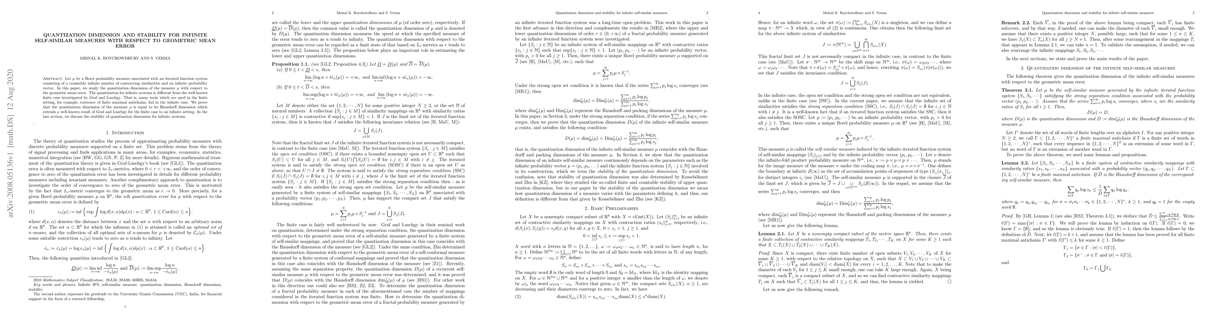 This paper studies the quantization dimension of infinite self-similar measures and finds it equals its Hausdorff dimension, extending a finite setting result to an infinite case. It also discusses stability in this new context.