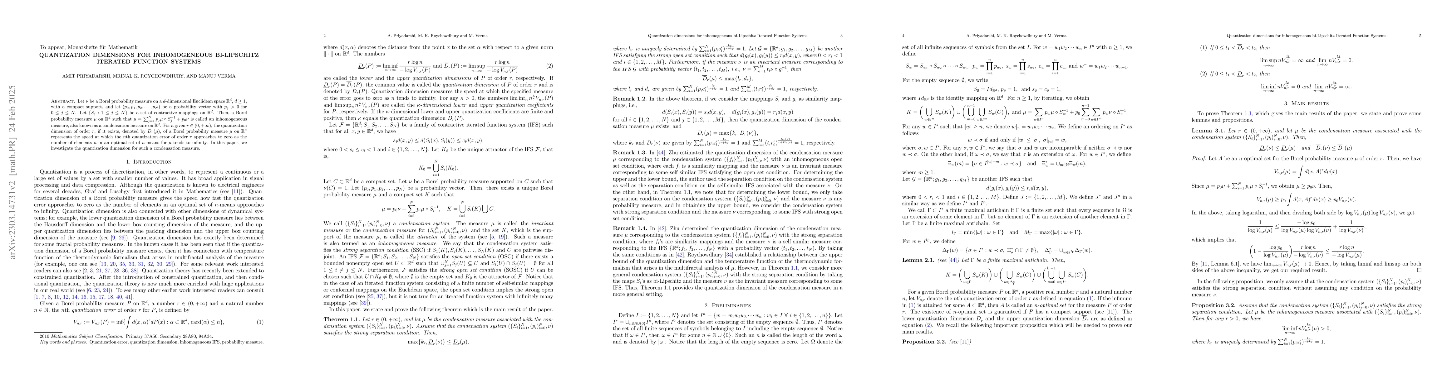 This paper investigates the quantization dimension $D_r(\mu)$ for inhomogeneous measures $\mu$ generated by a set of contractive mappings on $\mathbb{R}^d$, focusing on the rate at which the quantization error diminishes as the number of quantization centers increases.