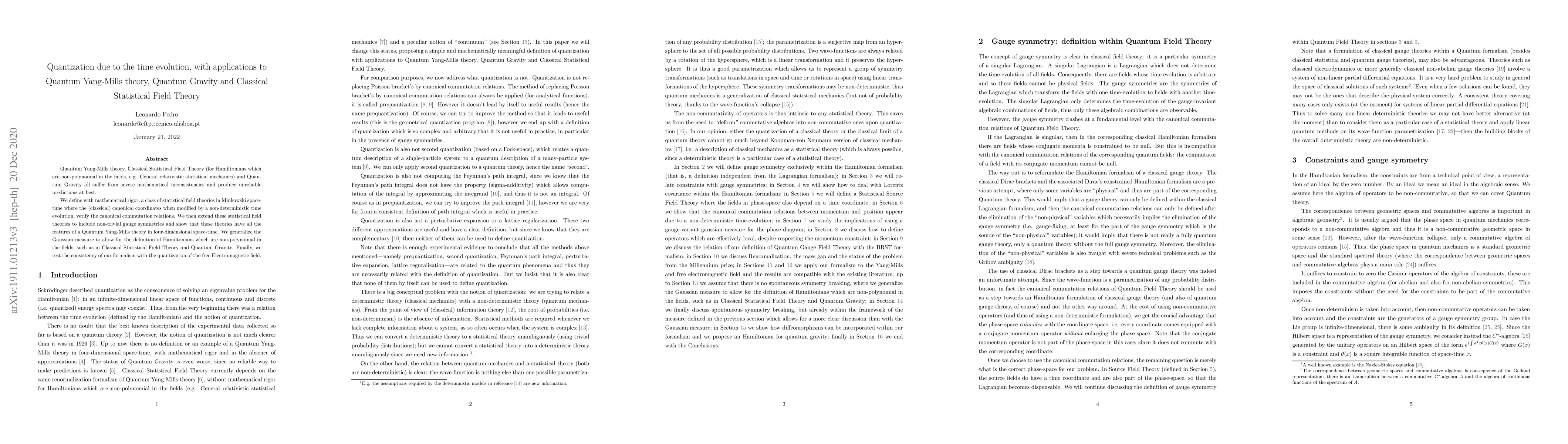 This paper rigorously defines a class of statistical field theories in Minkowski space-time that, when subjected to a non-deterministic time evolution, satisfy canonical commutation relations. It extends these theories to include gauge symmetries, addressing inconsistencies in Quantum Yang-Mills, Classical Statistical Field Theory, and Quantum Gravity, and validates the approach through a consistency test with the quantization of the free Electromagnetic field.