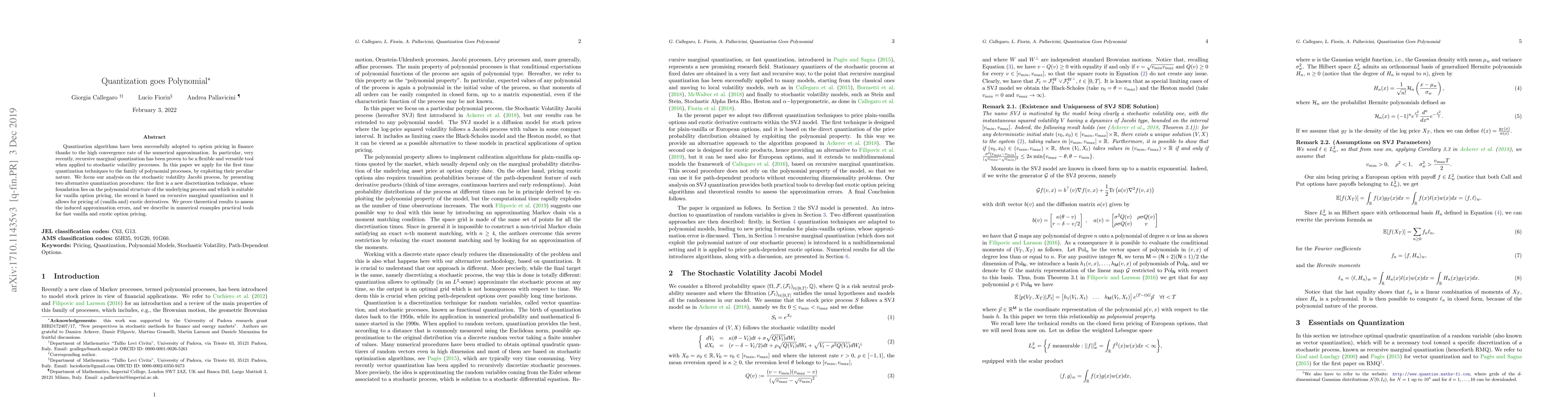 Quantization algorithms have been successfully adopted to option pricing in finance thanks to the high convergence rate of the numerical approximation. In particular, very recently, recursive marginal quantization has been proven to be a flexible and versatile tool when applied to stochastic volatility processes. In this paper we apply for the first time quantization techniques to the family of polynomial processes, by exploiting their peculiar nature. We focus our analysis on the stochastic volatility Jacobi process, by presenting two alternative quantization procedures: the first is a new discretization technique, whose foundation lies on the polynomial structure of the underlying process and which is suitable for vanilla option pricing, the second is based on recursive marginal quantization and it allows for pricing of (vanilla and) exotic derivatives. We prove theoretical results to assess the induced approximation errors, and we describe in numerical examples practical tools for fast vanilla and exotic option pricing.