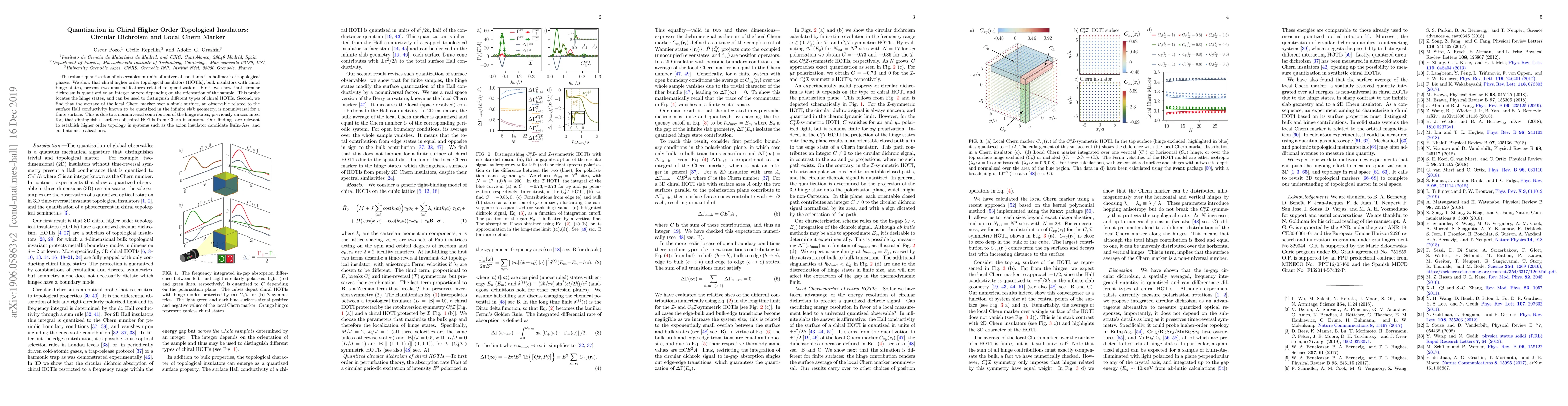 The robust quantization of observables in units of universal constants is a hallmark of topological phases. We show that chiral higher order topological insulators (HOTIs), bulk insulators with chiral hinge states, present two unusual features related to quantization. First, we show that circular dichroism is quantized to an integer or zero depending on the orientation of the sample. This probe locates the hinge states, and can be used to distinguish different types of chiral HOTIs. Second, we find that the average of the local Chern marker over a single surface, an observable related to the surface Hall conductivity known to be quantized in the infinite slab geometry, is nonuniversal for a finite surface. This is due to a nonuniversal contribution of the hinge states, previously unaccounted for, that distinguishes surfaces of chiral HOTIs from Chern insulators. Our findings are relevant to establish higher order topology in systems such as the axion insulator candidate EuIn$_2$As$_2$, and cold atomic realizations.