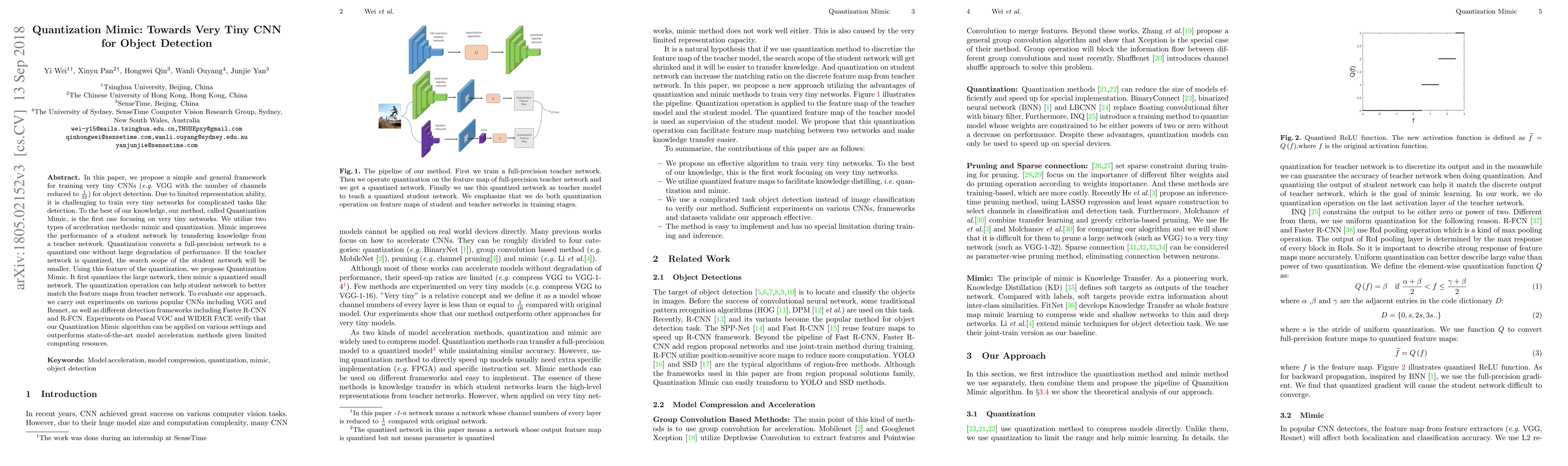 Researchers propose a method called Quantization Mimic to train tiny CNNs for object detection, combining knowledge transfer from teacher networks with quantized representations.