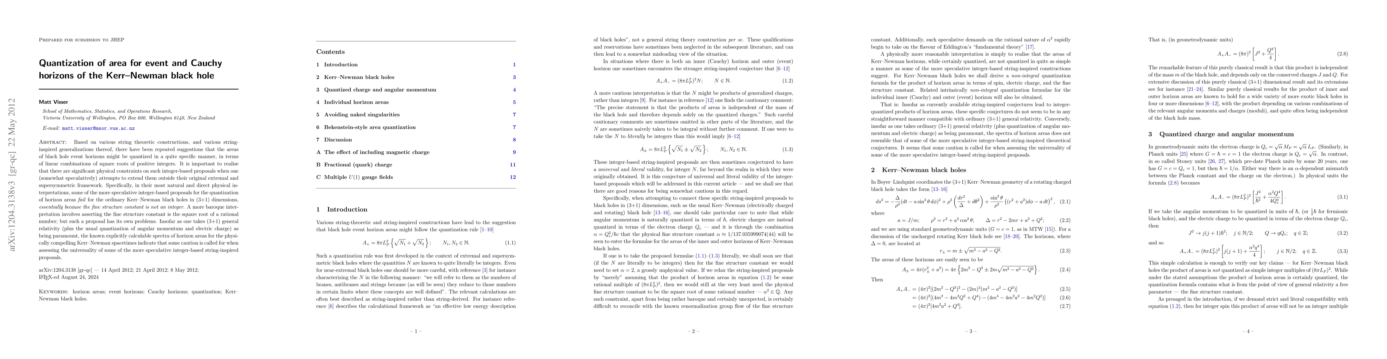 Based on various string theoretic constructions, and various string-inspired generalizations thereof, there have been repeated suggestions that the areas of black hole event horizons might be quantized in a quite specific manner, in terms of linear combinations of square roots of positive integers. It is important to realise that there are significant physical constraints on such integer-based proposals when one (somewhat speculatively) attempts to extend them outside their original extremal and supersymmetric framework. Specifically, in their most natural and direct physical interpretations, some of the more speculative integer-based proposals for the quantization of horizon areas fail for the ordinary Kerr-Newman black holes in (3+1) dimensions, essentially because the fine structure constant is not an integer. A more baroque interpretation involves asserting the fine structure constant is the square root of a rational number; but such a proposal has its own problems. Insofar as one takes (3+1) general relativity (plus the usual quantization of angular momentum and electric charge) as being paramount, the known explicitly calculable spectra of horizon areas for the physically compelling Kerr-Newman spacetimes indicate that some caution is called for when assessing the universality of some of the more speculative integer-based string-inspired proposals.