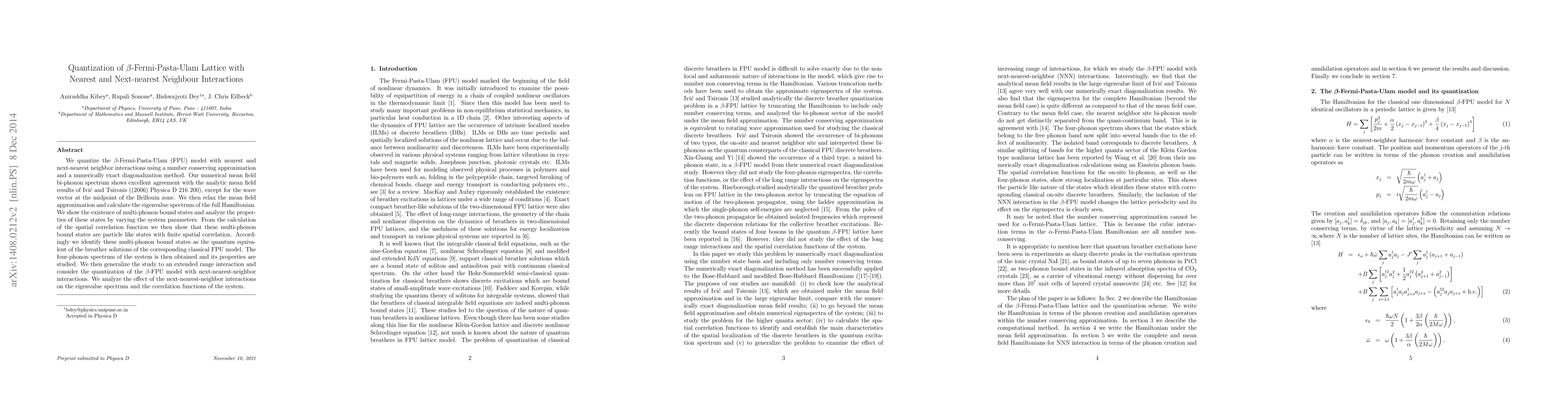 This paper quantizes the \beta-Fermi-Pasta-Ulam lattice with nearest and next-nearest neighbour interactions, revealing multi-phonon bound states that serve as quantum breather equivalents. The study also examines the impact of next-nearest-neighbour interactions on the system's eigenvalue spectrum and correlation functions.