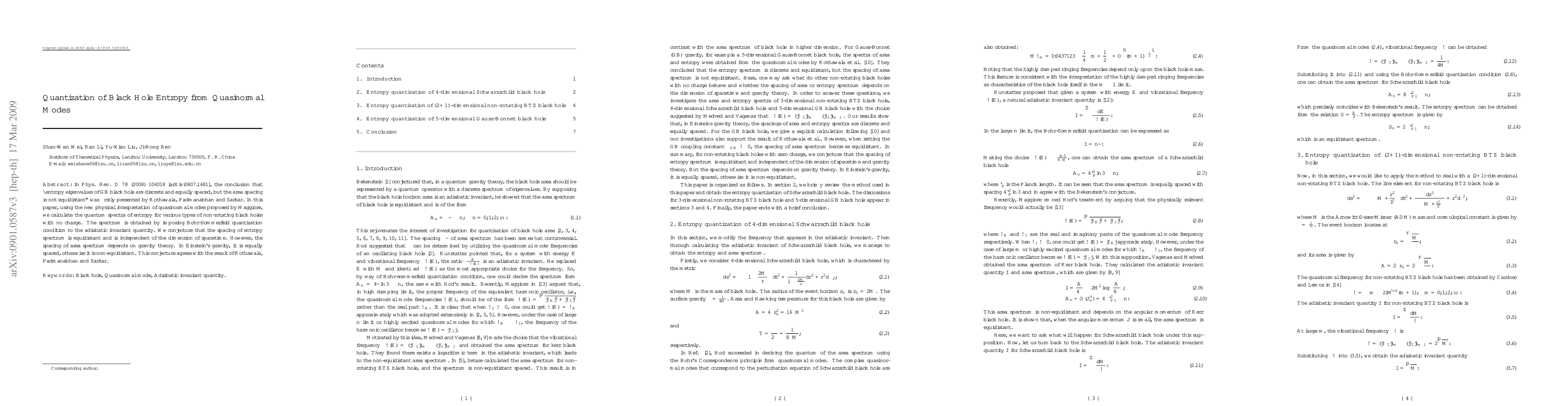 In Phys. Rev. D 78 (2008) 104018 [arXiv:0807.1481], the conclusion that "entropy eigenvalues of GB black hole are discrete and equally spaced, but the area spacing is not equidistant" was firstly presented by Kothawala, Padmanabhan and Sarkar. In this paper, using the new physical interpretation of quasinormal modes proposed by Maggiore, we calculate the quantum spectra of entropy for various types of non-rotating black holes with no charge. The spectrum is obtained by imposing Bohr-Sommerfeld quantization condition to the adiabatic invariant quantity. We conjecture that the spacing of entropy spectrum is equidistant and is independent of the dimension of spacetime. However, the spacing of area spectrum depends on gravity theory. In Einstein's gravity, it is equally spaced, otherwise it is non-equidistant. This conjecture agrees with the result of Kothawala, Padmanabhan and Sarkar.
