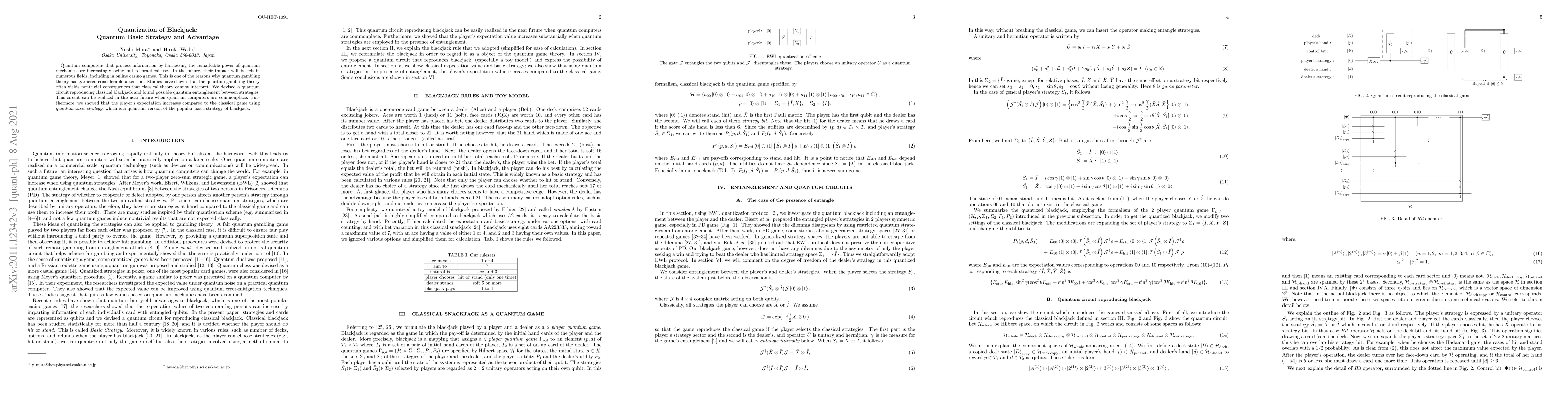Quantum computers that process information by harnessing the remarkable power of quantum mechanics are increasingly being put to practical use. In the future, their impact will be felt in numerous fields, including in online casino games. This is one of the reasons why quantum gambling theory has garnered considerable attention. Studies have shown that the quantum gambling theory often yields nontrivial consequences that classical theory cannot interpret. We devised a quantum circuit reproducing classical blackjack and found possible quantum entanglement between strategies. This circuit can be realized in the near future when quantum computers are commonplace. Furthermore, we showed that the player's expectation increases compared to the classical game using quantum basic strategy, which is a quantum version of the popular basic strategy of blackjack.