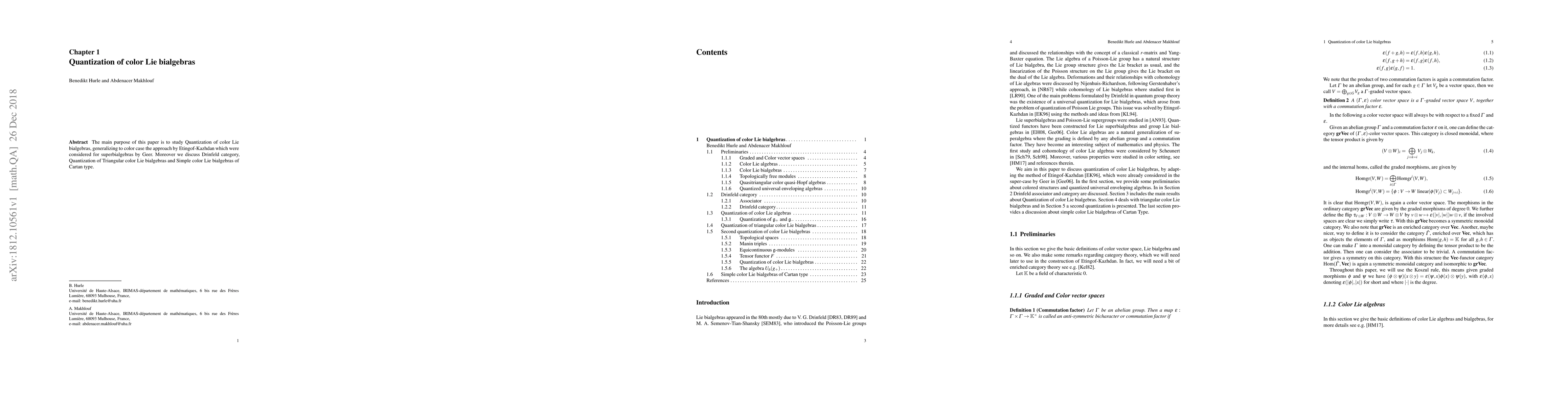 The main purpose of this paper is to study Quantization of color Lie bialgebras, generalizing to color case the approach by Etingof-Kazhdan which were considered for superbialgebras by Geer. Moreover we discuss Drinfeld category, Quantization of Triangular color Lie bialgebras and Simple color Lie bialgebras of Cartan type.