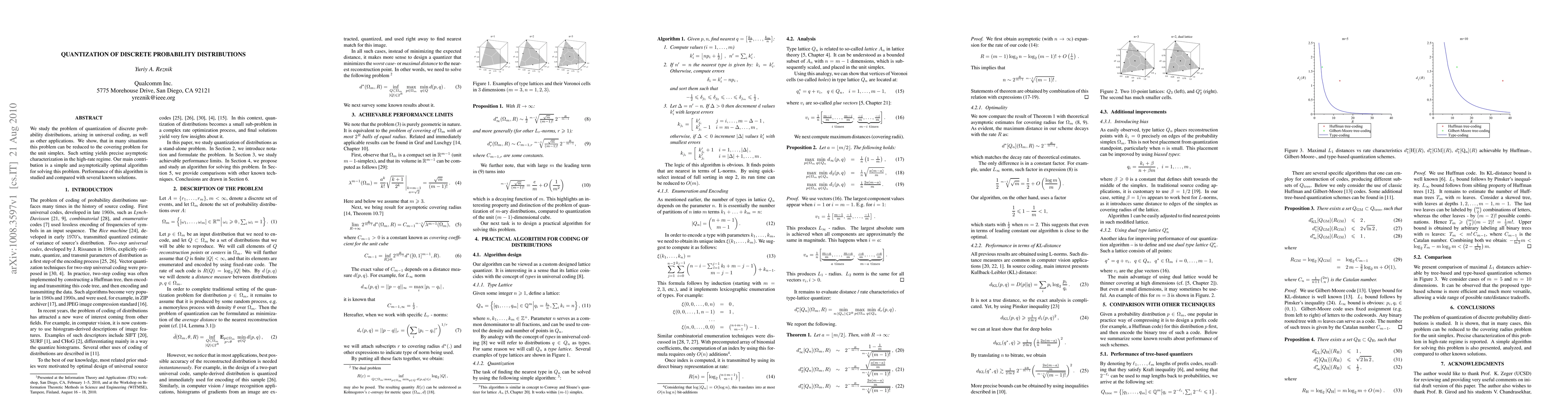 This paper investigates the quantization of discrete probability distributions, reducing it to a unit simplex covering problem for universal coding applications. It presents an asymptotically optimal algorithm and compares its performance with existing solutions.