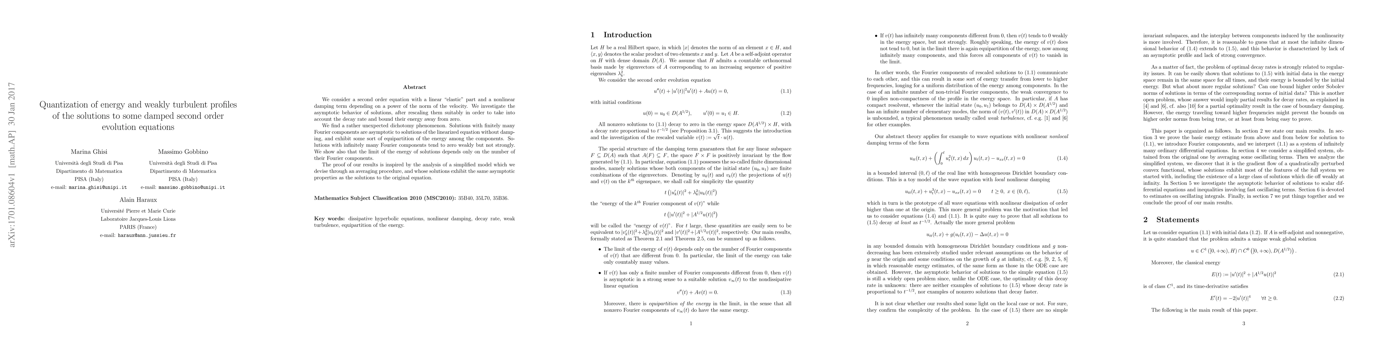 We consider a second order equation with a linear "elastic" part and a nonlinear damping term depending on a power of the norm of the velocity. We investigate the asymptotic behavior of solutions, after rescaling them suitably in order to take into account the decay rate and bound their energy away from zero.We find a rather unexpected dichotomy phenomenon. Solutions with finitely many Fouriercomponents are asymptotic to solutions of the linearized equationwithout damping, and exhibit some sort of equipartition of theenergy among the components. Solutions with infinitely manyFourier components tend to zero weakly but not strongly. We showalso that the limit of the energy of solutions depends only on thenumber of their Fourier components.The proof of our results is inspired by the analysis of asimplified model which we devise through an averaging procedure,and whose solutions exhibit the same asymptotic properties as thesolutions to the original equation.