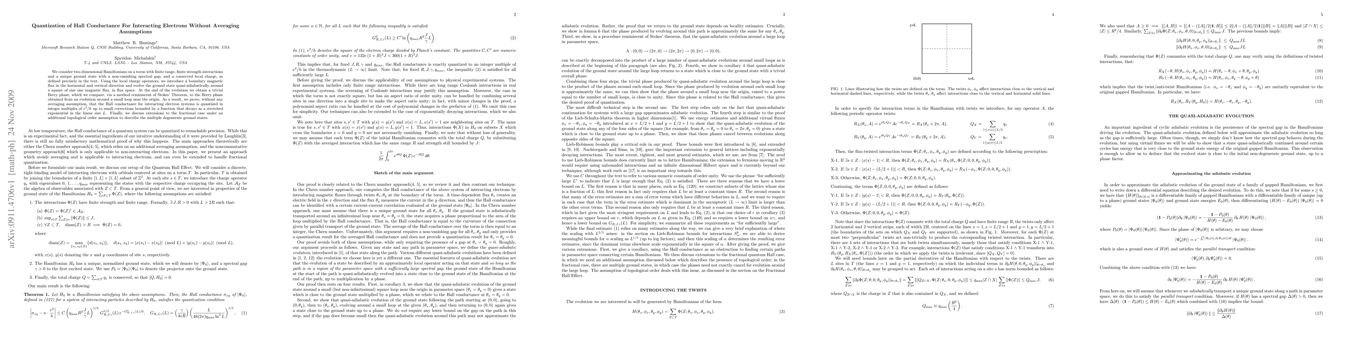 We consider two-dimensional Hamiltonians on a torus with finite range, finite strength interactions and a unique ground state with a non-vanishing spectral gap, and a conserved local charge, as defined precisely in the text. Using the local charge operators, we introduce a boundary magnetic flux in the horizontal and vertical direction and evolve the ground state quasi-adiabatically around a square of size one magnetic flux, in flux space. At the end of the evolution we obtain a trivial Berry phase, which we compare, via a method reminiscent of Stokes' Theorem, to the Berry phase obtained from an evolution around a small loop near the origin. As a result, we prove, without any averaging assumption, that the Hall conductance for interacting electron systems is quantized in integer multiples of e^2/h up to small corrections bounded by a function that decays as a stretched exponential in the linear size L. Finally, we discuss extensions to the fractional case under an additional topological order assumption to describe the multiple degenerate ground states.