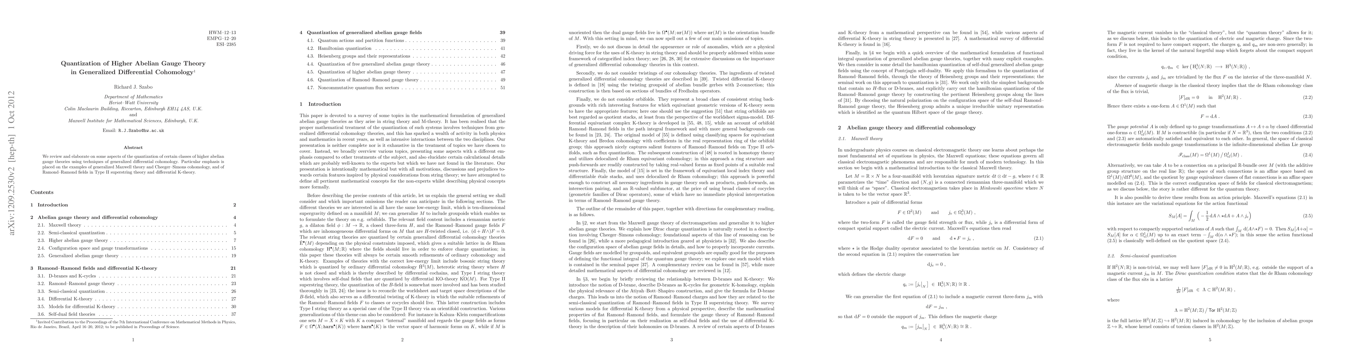 Summary: This paper explores the quantization of higher abelian gauge theories through generalized differential cohomology, focusing on generalized Maxwell theory and Ramond-Ramond fields in Type II superstring theory, utilizing Cheeger-Simons cohomology and differential K-theory.
