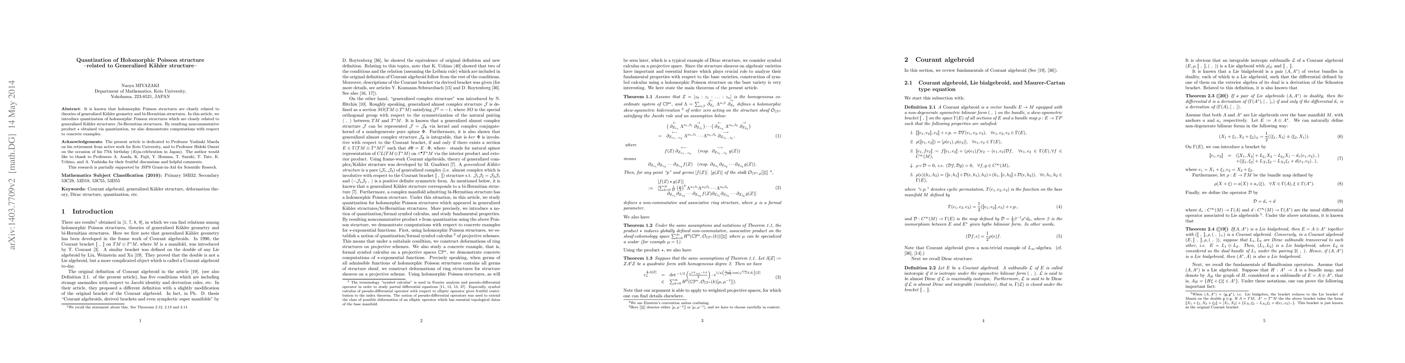 This paper introduces the quantization of holomorphic Poisson structures, linking them to generalized Kähler and bi-Hermitian structures. It demonstrates computations using the resulting noncommutative product $\star$ through specific examples.