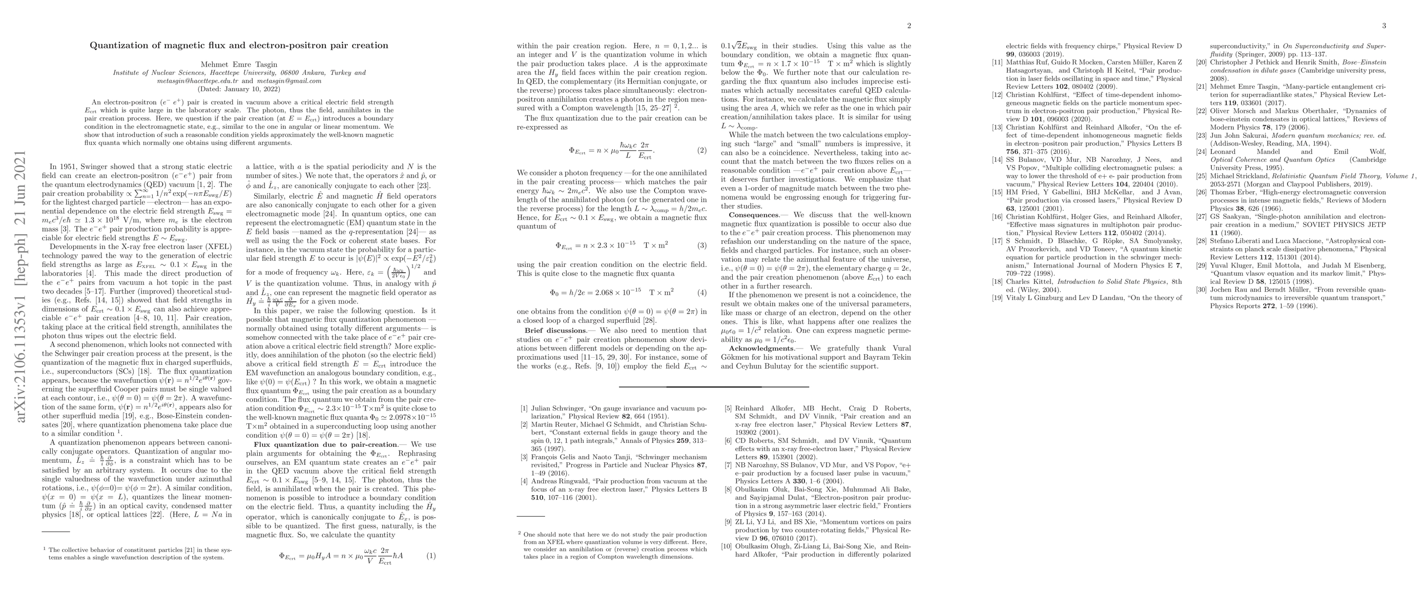 Researchers investigate whether electron-positron pair creation introduces a boundary condition in electromagnetic states, leading to an approximate match with magnetic flux quanta.