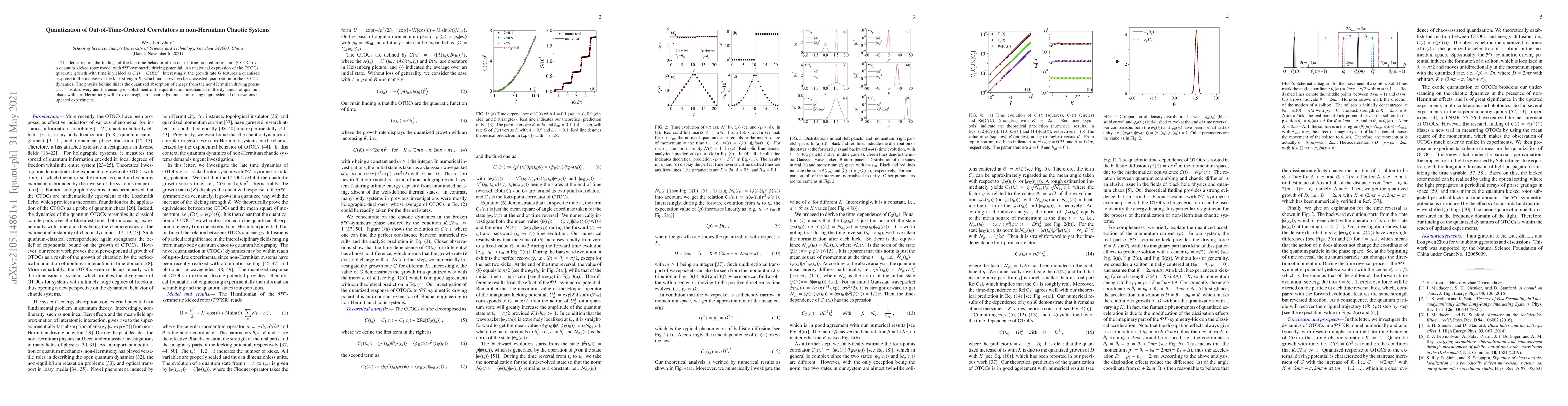 This paper quantifies the growth rate of out-of-time-ordered correlators in non-Hermitian chaotic systems using a quantum kicked rotor model, revealing a quantized response to increased kick strength. The findings suggest a mechanism of chaos-assisted quantization driven by the absorption of energy from the non-Hermitian driving potential.