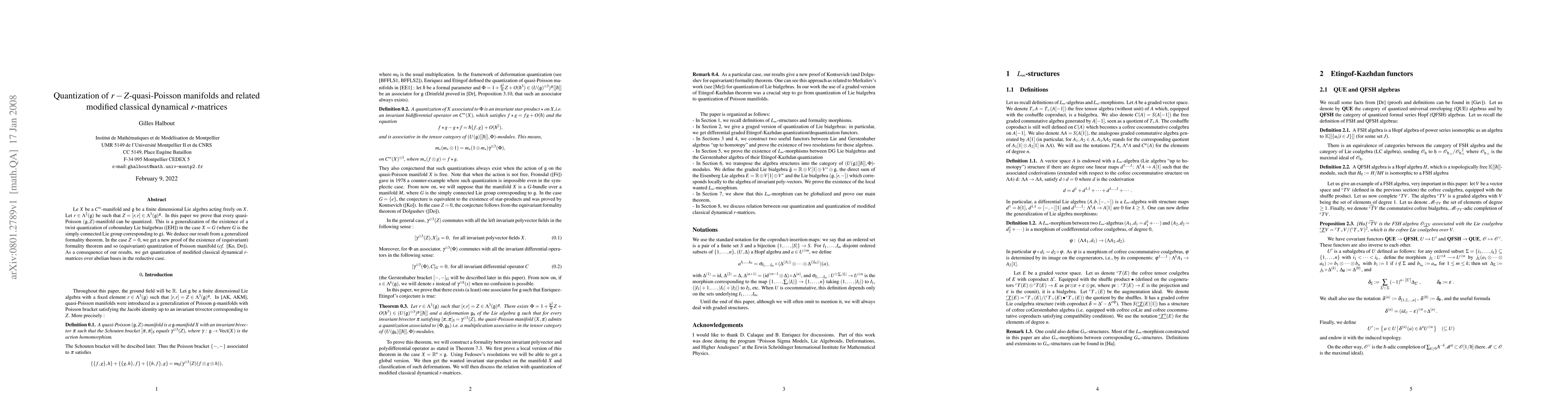 Le $X$ be a $C^\infty$-manifold and $\g$ be a finite dimensional Lie algebra acting freely on $X$. Let $r \in \ve^2(\g)$ be such that $Z=[r,r] \in \ve^3(\g)^\g$. In this paper we prove that every quasi-Poisson $(\g,Z)$-manifold can be quantized. This is a generalization of the existence of a twist quantization of coboundary Lie bialgebras (\cite{EH}) in the case $X=G$ (where $G$ is the simply connected Lie group corresponding to $\g$). We deduce our result from a generalized formality theorem. In the case Z=0, we get a new proof of the existence of (equivariant) formality theorem and so (equivariant) quantization of Poisson manifold ({\it cf.} \cite{Ko,Do}). As a consequence of our results, we get quantization of modified classical dynamical $r$-matrices over abelian bases in the reductive case