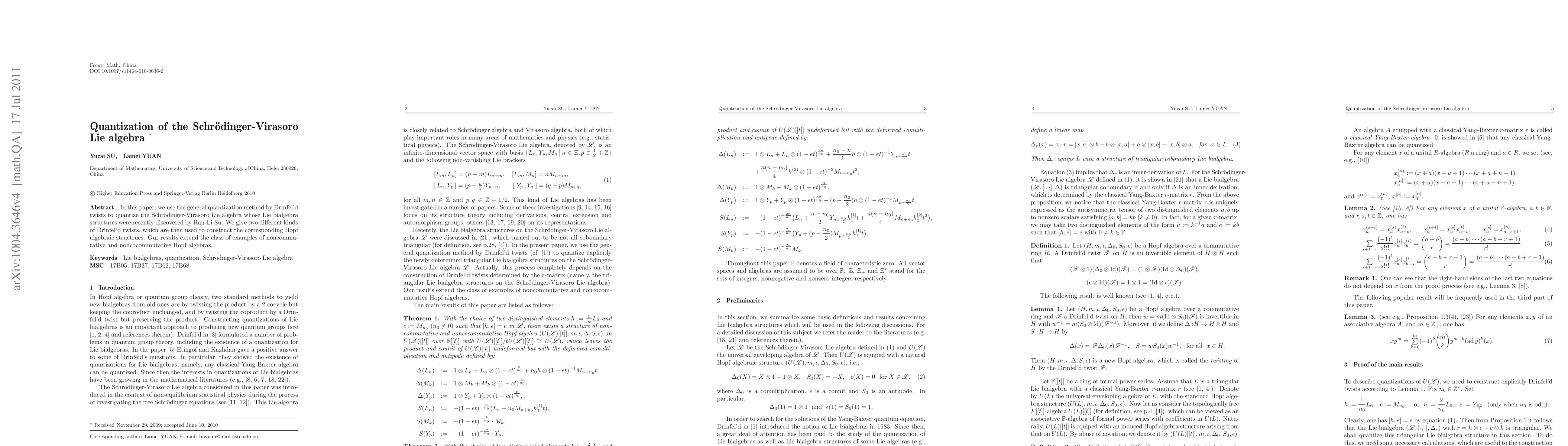 This paper quantizes the Schrödinger-Virasoro Lie algebra using the Drinfel'd twist method, constructing Hopf algebraic structures from two distinct twists, thereby expanding the range of noncommutative and noncocommutative Hopf algebras.