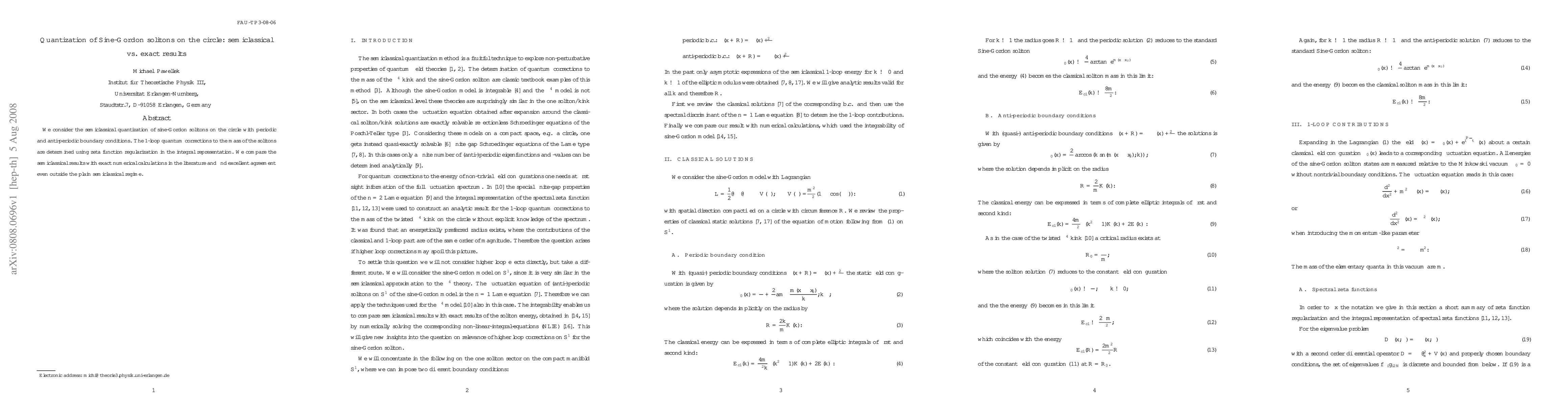 This study quantizes sine-Gordon solitons on a circle using semiclassical methods and compares these results with exact numerical calculations, finding high agreement even beyond typical semiclassical regimes. The 1-loop quantum corrections are evaluated via zeta function regularization.