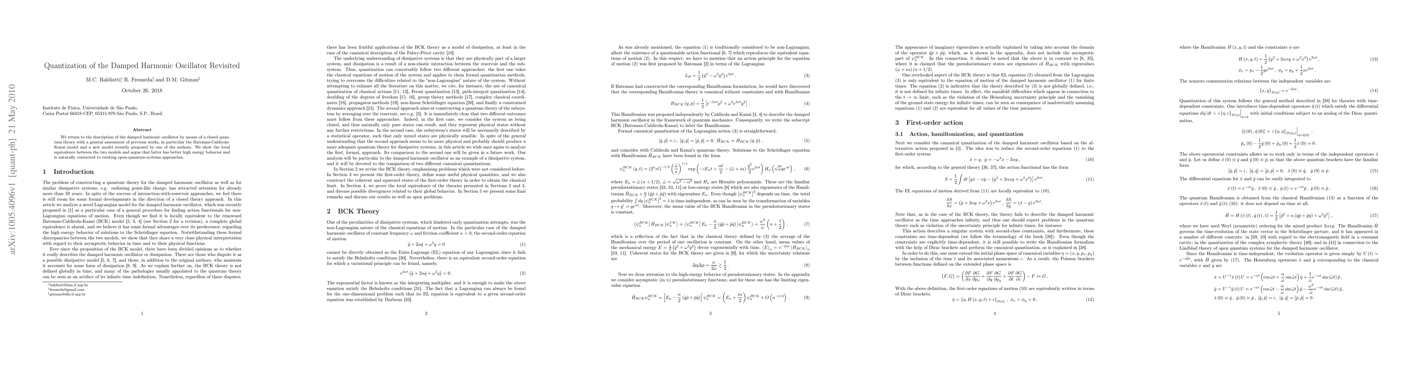 This paper revisits the quantum description of the damped harmonic oscillator, comparing the Bateman-Caldirola-Kanai model with a new model proposed by the authors. It demonstrates the equivalence between the two models and argues that the new model exhibits superior high-energy behavior and aligns better with open-quantum-systems approaches.