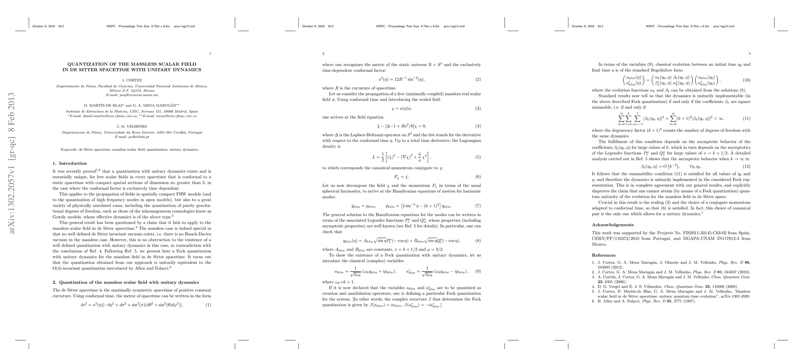 Summary: This paper quantizes the massless scalar field in de Sitter spacetime using a Fock space approach that preserves unitary dynamics, providing a consistent framework for quantum field theory in curved spacetime.