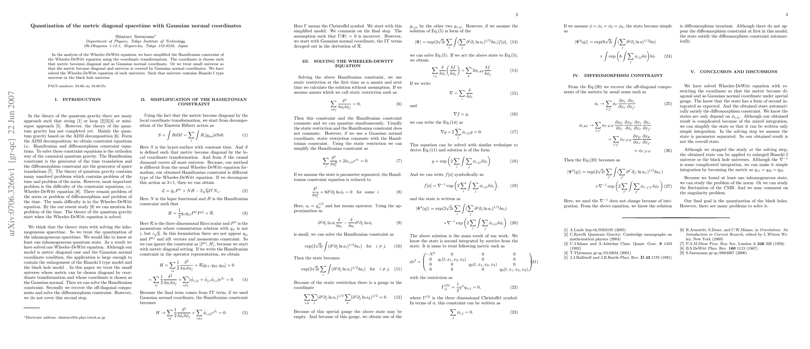 Researchers used Gaussian normal coordinates to simplify the Hamiltonian constraint of the Wheeler-DeWitt equation, solving for universes with a diagonal metric, including Bianchi I type universes or black hole universes.