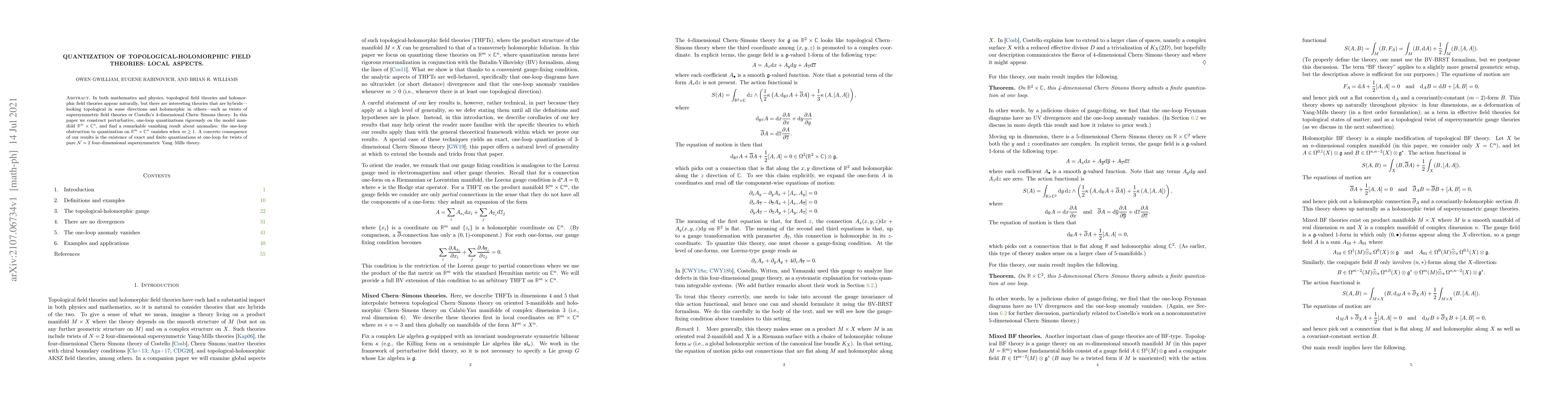 In both mathematics and physics, topological field theories and holomorphic field theories appear naturally, but there are interesting theories that are hybrids -- looking topological in some directions and holomorphic in others -- such as twists of supersymmetric field theories or Costello's 4-dimensional Chern--Simons theory. In this paper we construct perturbative, one-loop quantizations rigorously on the model manifold $\mathbb{R}^m \times \mathbb{C}^n$, and find a remarkable vanishing result about anomalies: the one-loop obstruction to quantization on $\mathbb{R}^m\times \mathbb{C}^n$ vanishes when $m\geq 1$. A concrete consequence of our results is the existence of exact and finite quantizations at one-loop for twists of pure $\mathcal{N} =2$ four-dimensional supersymmetric Yang--Mills theory.
