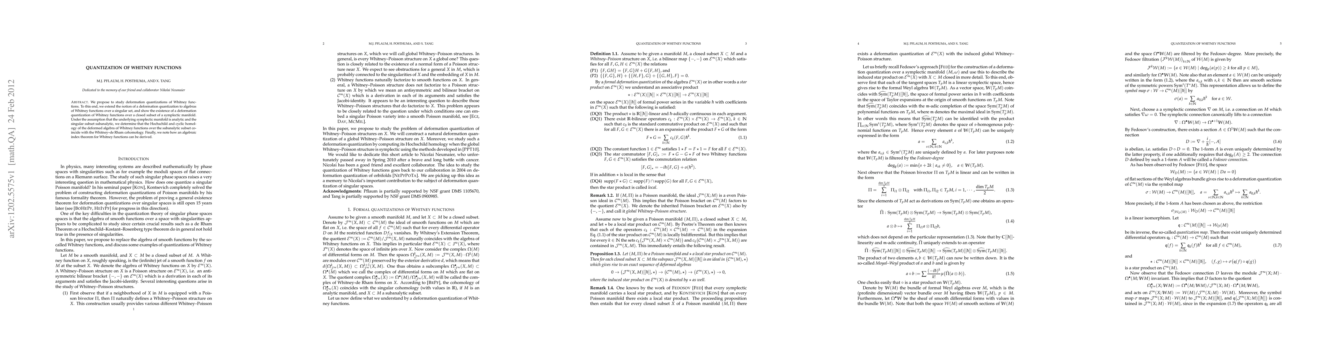 This paper explores the deformation quantization of Whitney functions over singular sets and proves the existence of such quantizations over closed subsets of symplectic manifolds. It also establishes a connection between the Hochschild and cyclic homology of the deformed algebra and the Whitney-de Rham cohomology, and derives an algebraic index theorem for Whitney functions.