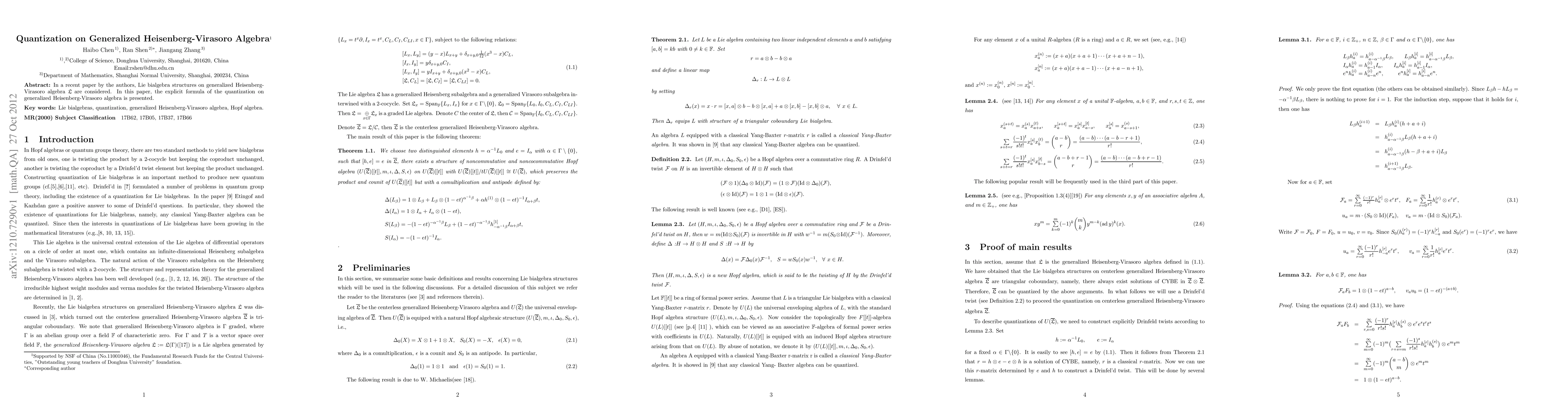 This paper presents an explicit formula for the quantization of the generalized Heisenberg-Virasoro algebra, building on previous work that explored its Lie bialgebra structures. The focus is on developing a framework for this quantization process.