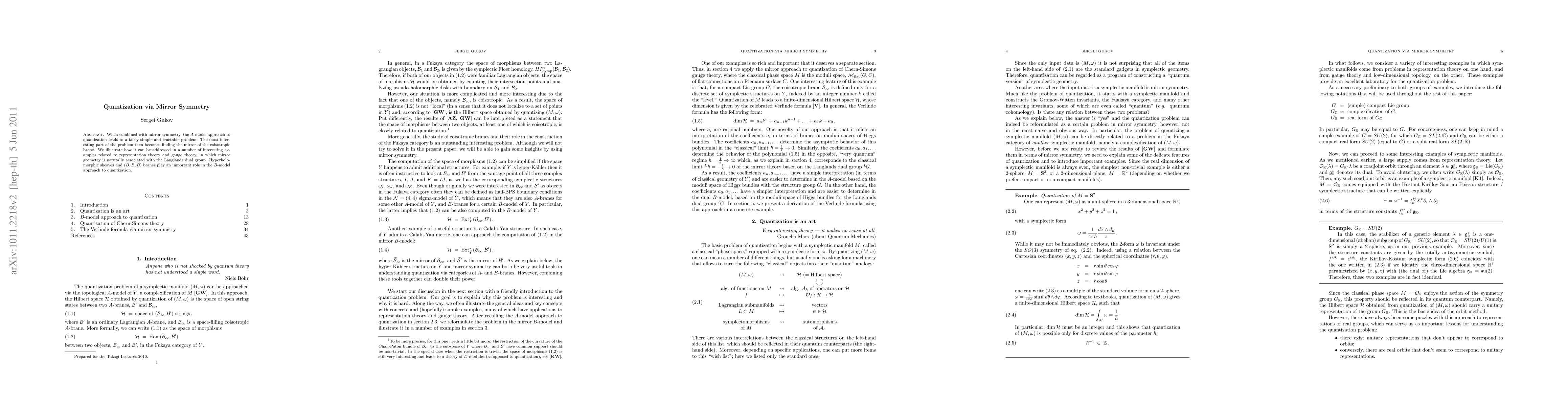 When combined with mirror symmetry, the A-model approach to quantization leads to a fairly simple and tractable problem. The most interesting part of the problem then becomes finding the mirror of the coisotropic brane. We illustrate how it can be addressed in a number of interesting examples related to representation theory and gauge theory, in which mirror geometry is naturally associated with the Langlands dual group. Hyperholomorphic sheaves and (B,B,B) branes play an important role in the B-model approach to quantization.