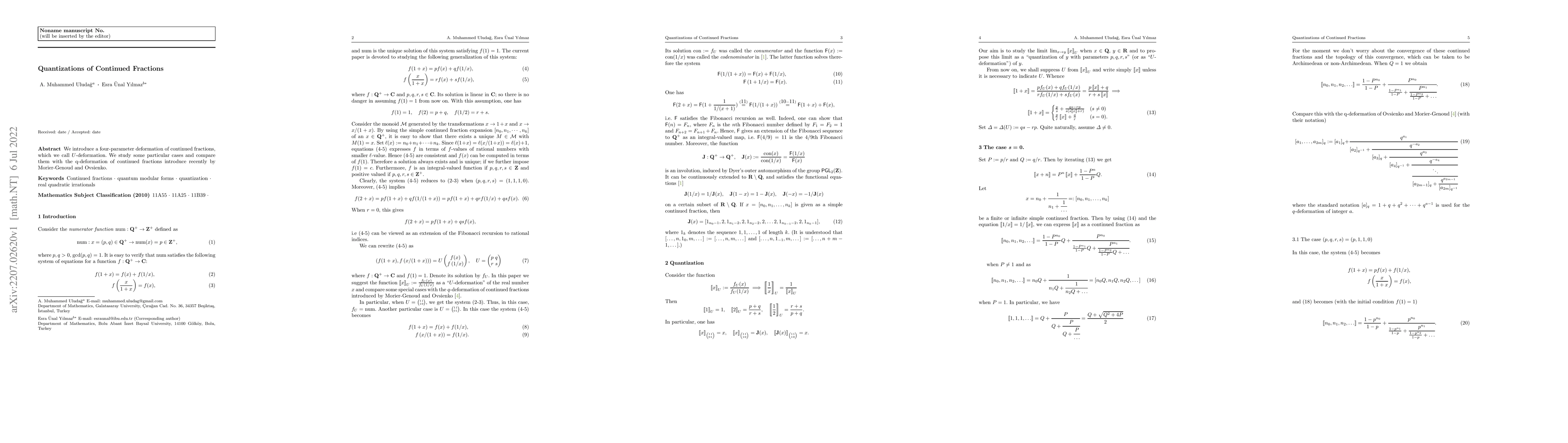 This paper introduces a four-parameter deformation of continued fractions termed $U$-deformation and examines specific cases, comparing them to the recently proposed q-deformation by Morier-Genoud and Ovsienko.