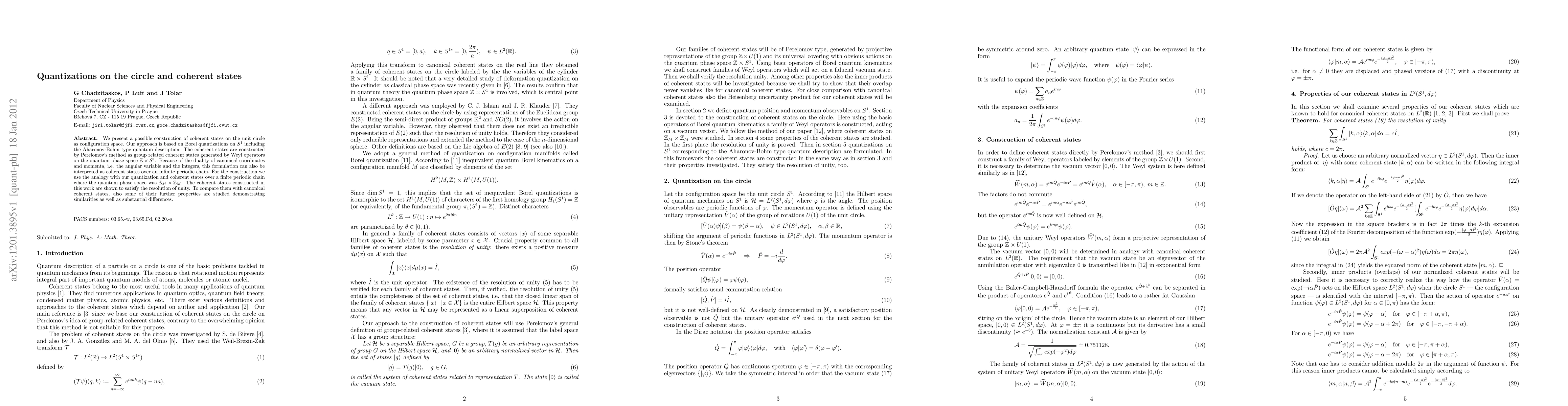 We present a possible construction of coherent states on the unit circle as configuration space. Our approach is based on Borel quantizations on S^1 including the Aharonov-Bohm type quantum description. The coherent states are constructed by Perelomov's method as group related coherent states generated by Weyl operators on the quantum phase space Z x S^1. Because of the duality of canonical coordinates and momenta, i.e. the angular variable and the integers, this formulation can also be interpreted as coherent states over an infinite periodic chain. For the construction we use the analogy with our quantization and coherent states over a finite periodic chain where the quantum phase space was Z_M x Z_M. The coherent states constructed in this work are shown to satisfy the resolution of unity. To compare them with canonical coherent states, also some of their further properties are studied demonstrating similarities as well as substantial differences.