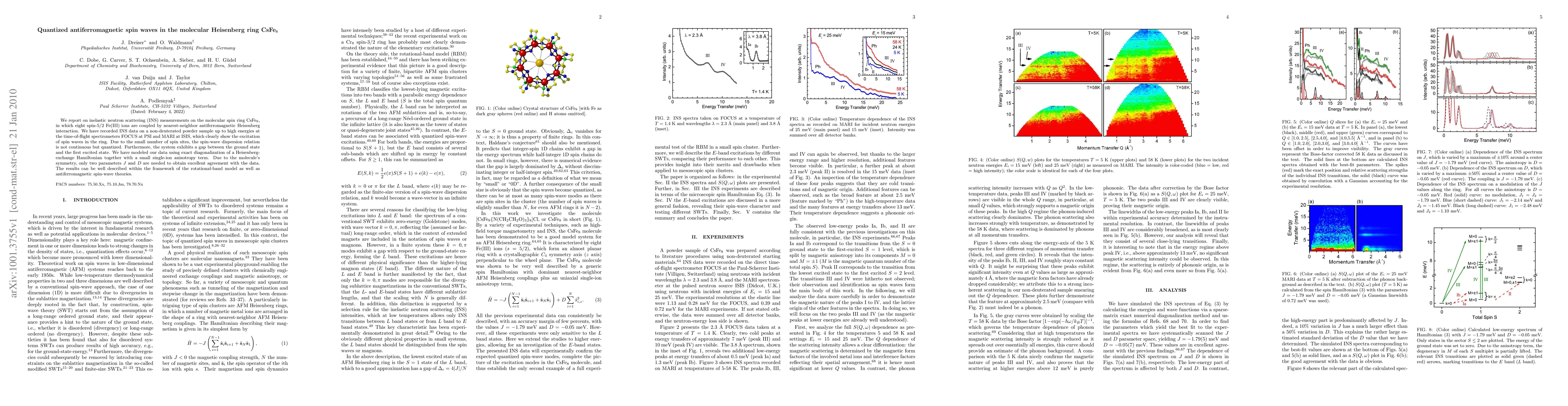 Researchers have discovered quantized antiferromagnetic spin waves in CsFe8, a molecular ring with eight iron ions coupled by an antiferromagnetic Heisenberg interaction. The system's unique properties lead to a gap between its ground state and the first excited state, which can be explained using simplified models of rotational-band theory and spin-wave theories.