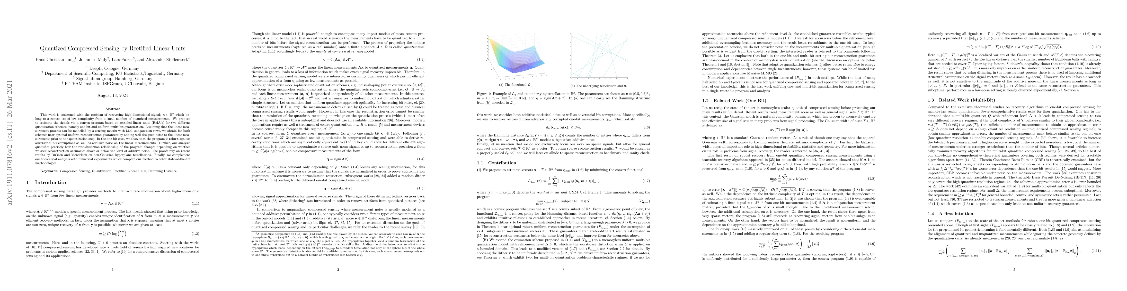 This work is concerned with the problem of recovering high-dimensional signals $\mathbf{x} \in \mathbb{R}^n$ which belong to a convex set of low-complexity from a small number of quantized measurements. We propose to estimate the signals via a convex program based on rectified linear units (ReLUs) for two different quantization schemes, namely one-bit and uniform multi-bit quantization. Assuming that the linear measurement process can be modelled by a sensing matrix with i.i.d. subgaussian rows, we obtain for both schemes near-optimal uniform reconstruction guarantees by adding well-designed noise to the linear measurements prior to the quantization step. In the one-bit case, we show that the program is robust against adversarial bit corruptions as well as additive noise on the linear measurements. Further, our analysis quantifies precisely how the rate-distortion relationship of the program changes depending on whether we seek reconstruction accuracies above or below the noise floor. The proofs rely on recent results by Dirksen and Mendelson on non-Gaussian hyperplane tessellations. Finally, we complement our theoretical analysis with numerical experiments which compare our method to other state-of-the-art methodologies.