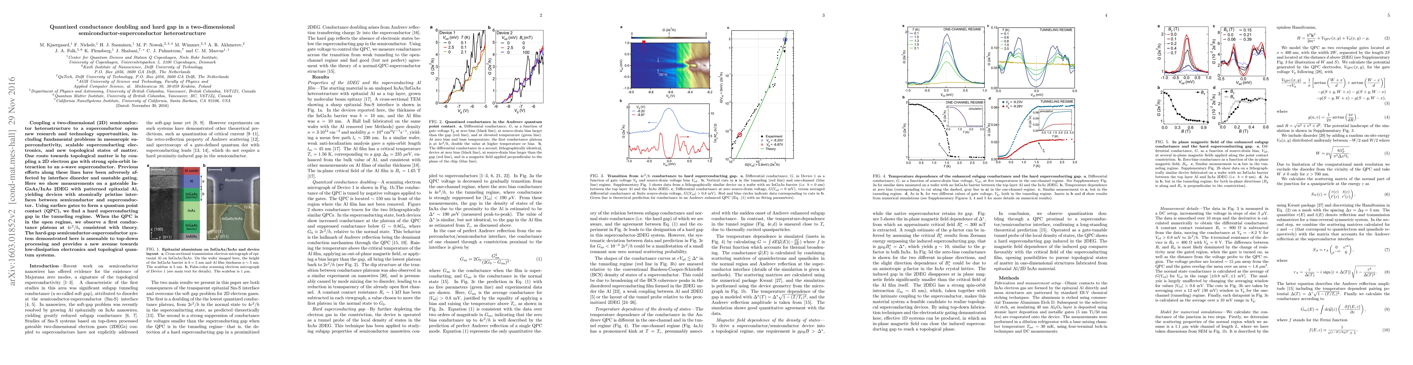 This paper reports on the successful coupling of a 2D semiconductor heterostructure with a superconductor, achieving a hard superconducting gap and quantized conductance doubling, overcoming previous issues with interface disorder. The findings pave the way for scalable hybrid systems in low-dissipation electronics and topological quantum computing.