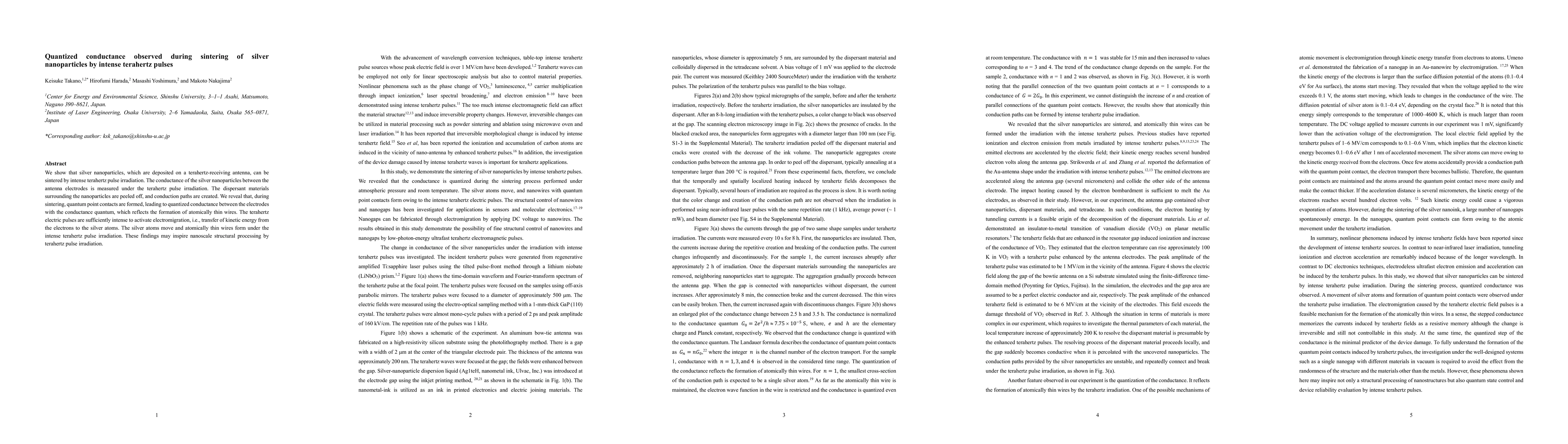 This study demonstrates that intense terahertz pulses can sinter silver nanoparticles, forming quantized conductance paths. The process activates electromigration, creating atomically thin wires and revealing quantum point contacts.