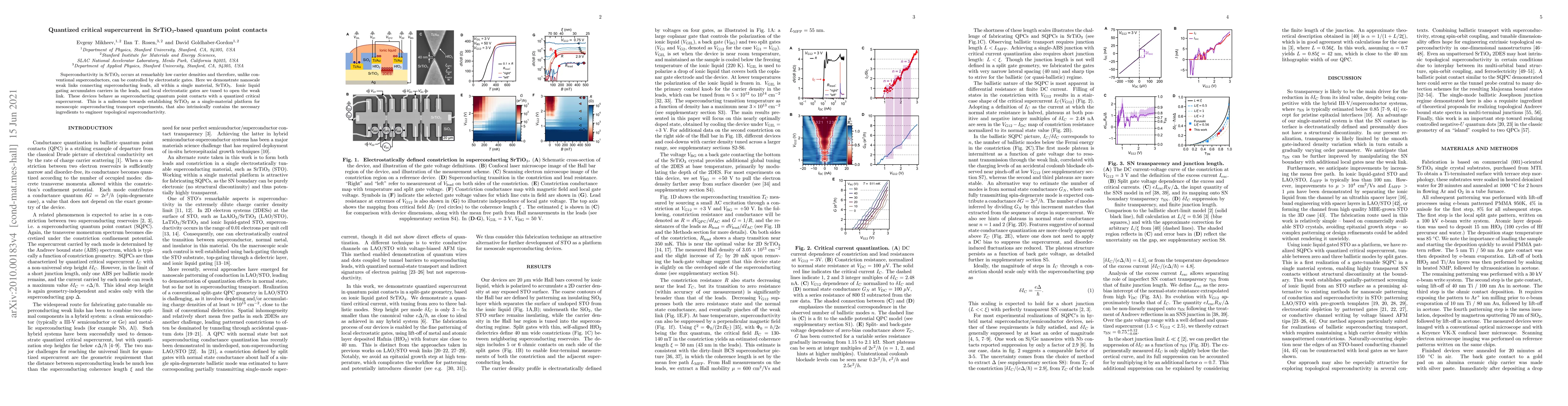 This paper demonstrates nanoscale weak links in SrTiO$_3$ that exhibit quantized critical supercurrent, showcasing SrTiO$_3$'s potential as a single-material platform for mesoscopic superconducting transport experiments and topological superconductivity engineering.