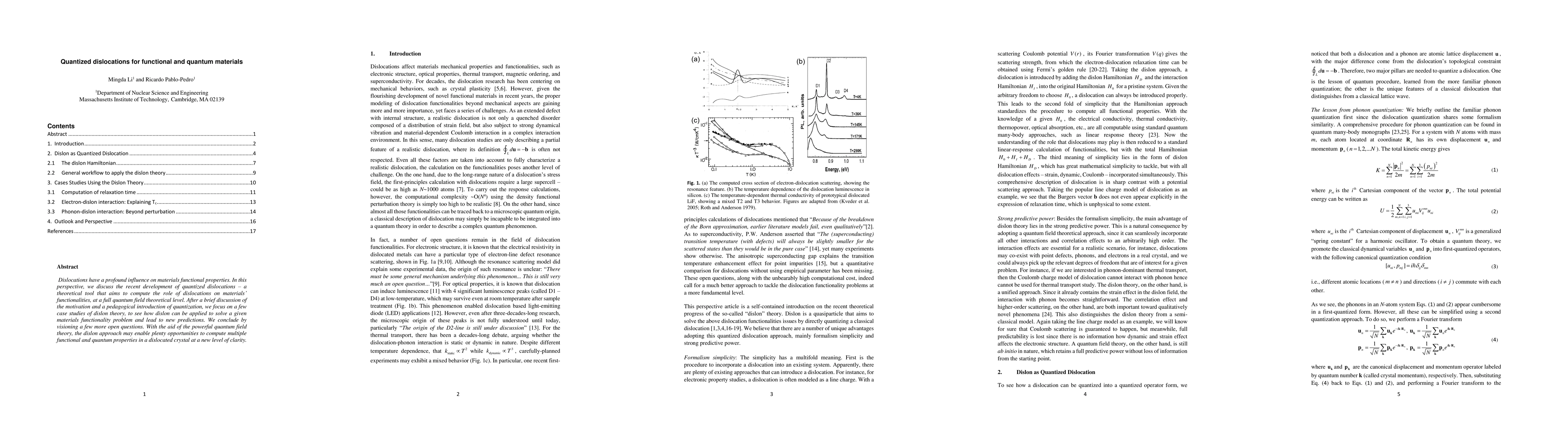 Dislocations have a profound influence on materials functional properties. In this perspective, we discuss the recent development of quantized dislocations - a theoretical tool that aims to compute the role of dislocations on materials' functionalities, at a full quantum field theoretical level. After a brief discussion of the motivation and a pedagogical introduction of quantization, we focus on a few case studies of dislon theory, to see how dislon can be applied to solve a given materials functionality problem and lead to new predictions. We conclude by visioning a few more open questions. With the aid of the powerful quantum field theory, the dislon approach may enable plenty opportunities to compute multiple functional and quantum properties in a dislocated crystal at a new level of clarity.