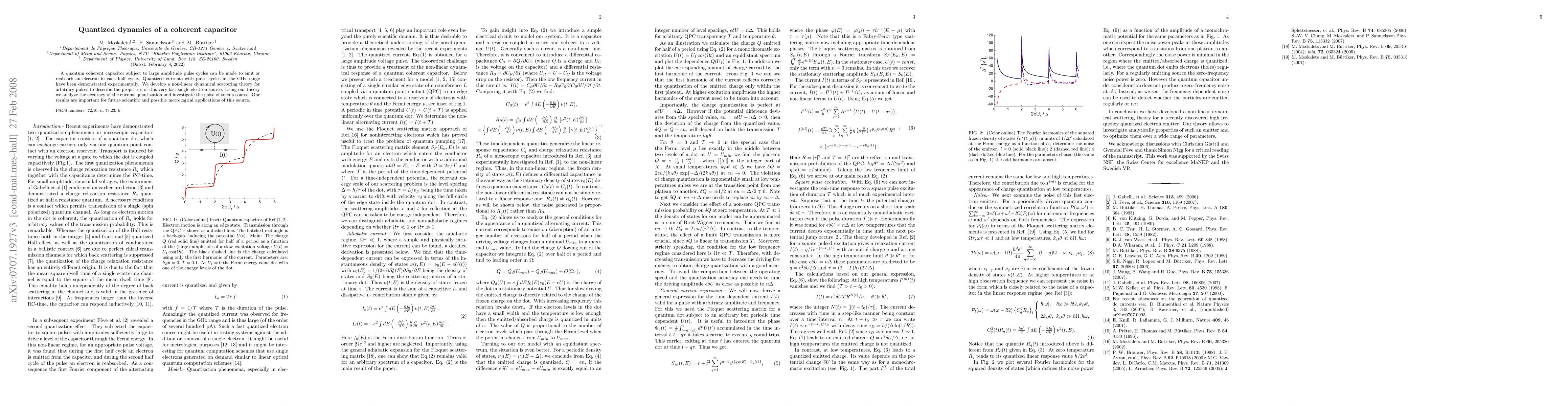 A quantum coherent capacitor subject to large amplitude pulse cycles can be made to emit or reabsorb an electron in each half cycle. Quantized currents with pulse cycles in the GHz range have been demonstrated experimentally. We develop a non-linear dynamical scattering theory for arbitrary pulses to describe the properties of this very fast single electron source. Using our theory we analyze the accuracy of the current quantization and investigate the noise of such a source. Our results are important for future scientific and possible metrological applications of this source.
