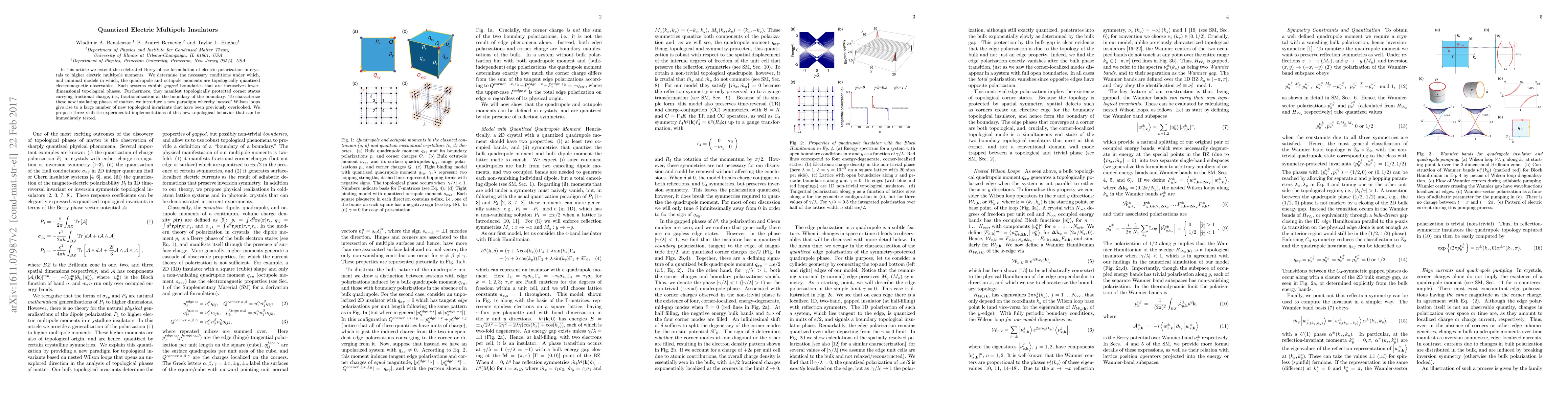 In this article we extend the celebrated Berry-phase formulation of electric polarization in crystals to higher electric multipole moments. We determine the necessary conditions under which, and minimal models in which, the quadrupole and octupole moments are topologically quantized electromagnetic observables. Such systems exhibit gapped boundaries that are themselves lower-dimensional topological phases. Furthermore, they manifest topologically protected corner states carrying fractional charge, i.e., fractionalization at the boundary of the boundary. To characterize these new insulating phases of matter, we introduce a new paradigm whereby `nested' Wilson loops give rise to a large number of new topological invariants that have been previously overlooked. We propose three realistic experimental implementations of this new topological behavior that can be immediately tested.