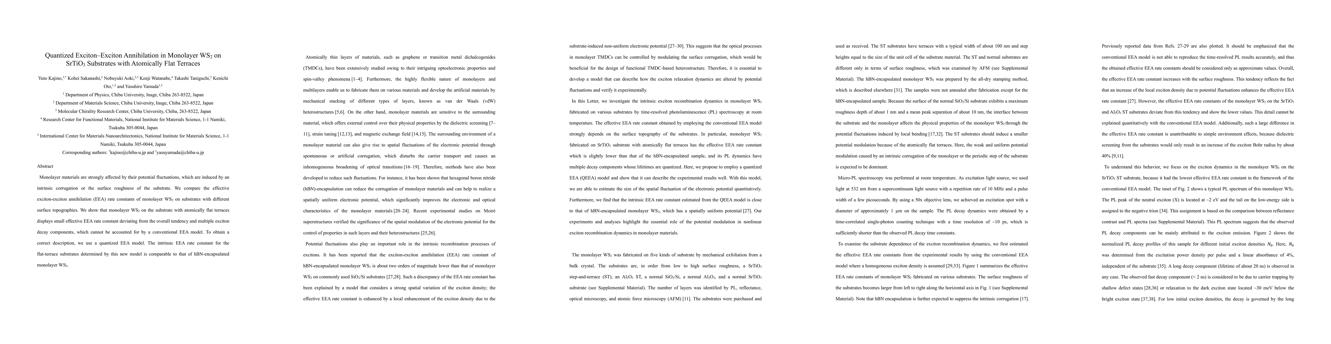 Monolayer materials are strongly affected by their potential fluctuations, which are induced by an intrinsic corrugation or the surface roughness of the substrate. We compare the effective exciton-exciton annihilation (EEA) rate constants of monolayer WS2 on substrates with different surface topographies. We show that monolayer WS2 on the substrate with atomically flat terraces displays small effective EEA rate constant deviating from the overall tendency and multiple exciton decay components, which cannot be accounted for by a conventional EEA model. To obtain a correct description, we use a quantized EEA model. The intrinsic EEA rate constant for the flat-terrace substrates determined by this new model is comparable to that of hBN-encapsulated monolayer WS2.