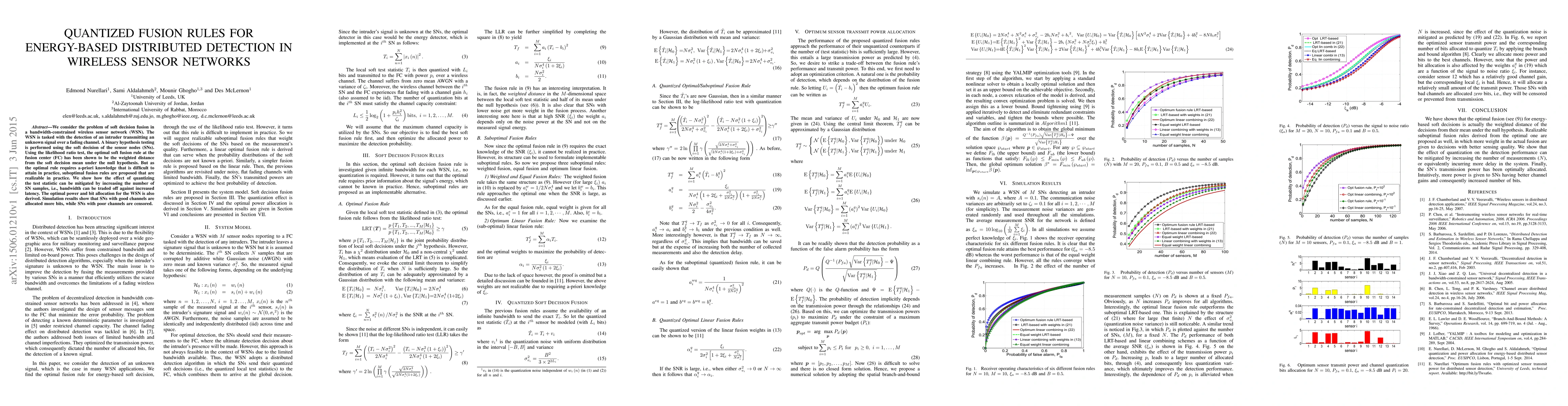 This paper proposes suboptimal fusion rules for energy-based distributed detection in wireless sensor networks, focusing on mitigating the effects of quantizing test statistics through bandwidth-latency trade-offs. It also derives optimal power and bit allocation strategies, demonstrating that nodes with better channels receive more bits, while those with poorer channels are censored.