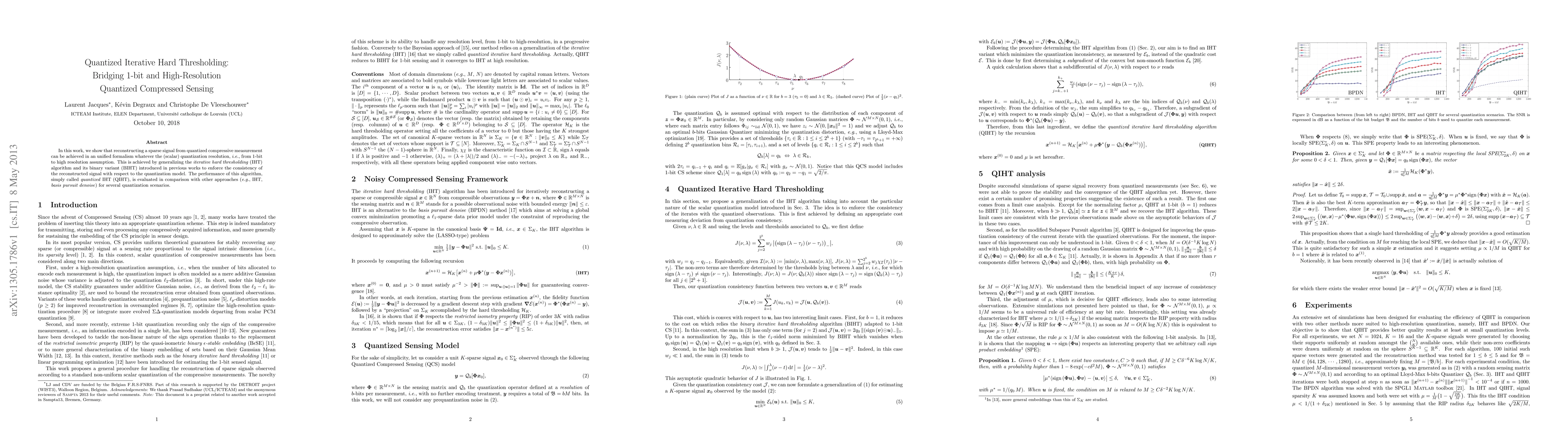 The Quantized Iterative Hard Thresholding (QIHT) algorithm bridges the gap between 1-bit and high-resolution quantization, outperforming other approaches in several scenarios.