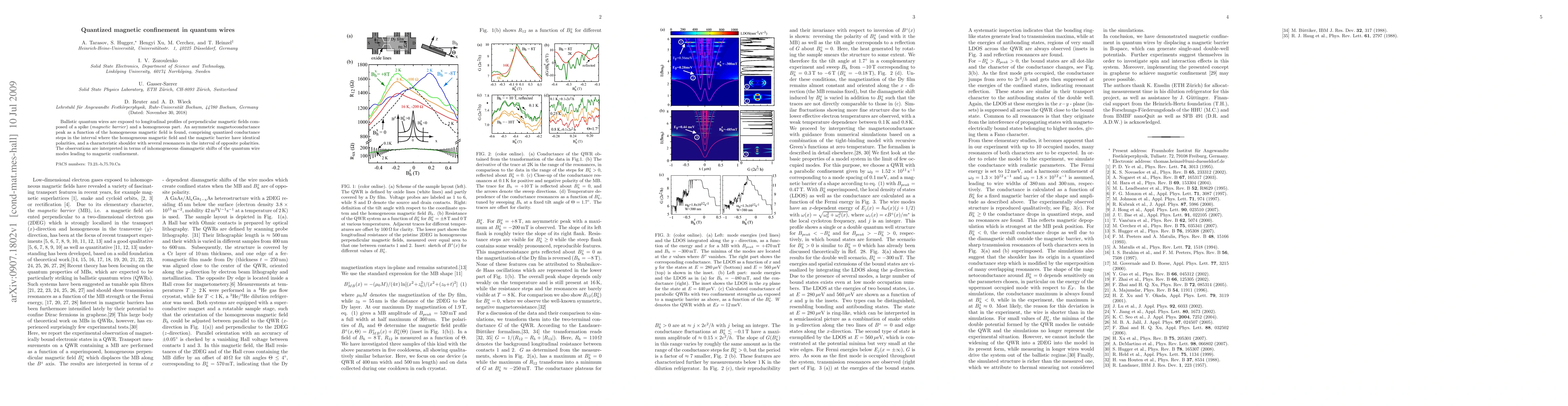 Ballistic quantum wires are exposed to longitudinal profiles of perpendicular magnetic fields composed of a spike (magnetic barrier) and a homogeneous part. An asymmetric magnetoconductance peak as a function of the homogeneous magnetic field is found, comprising quantized conductance steps in the interval where the homogeneous magnetic field and the magnetic barrier have identical polarities, and a characteristic shoulder with several resonances in the interval of opposite polarities. The observations are interpreted in terms of inhomogeneous diamagnetic shifts of the quantum wire modes leading to magnetic confinement.