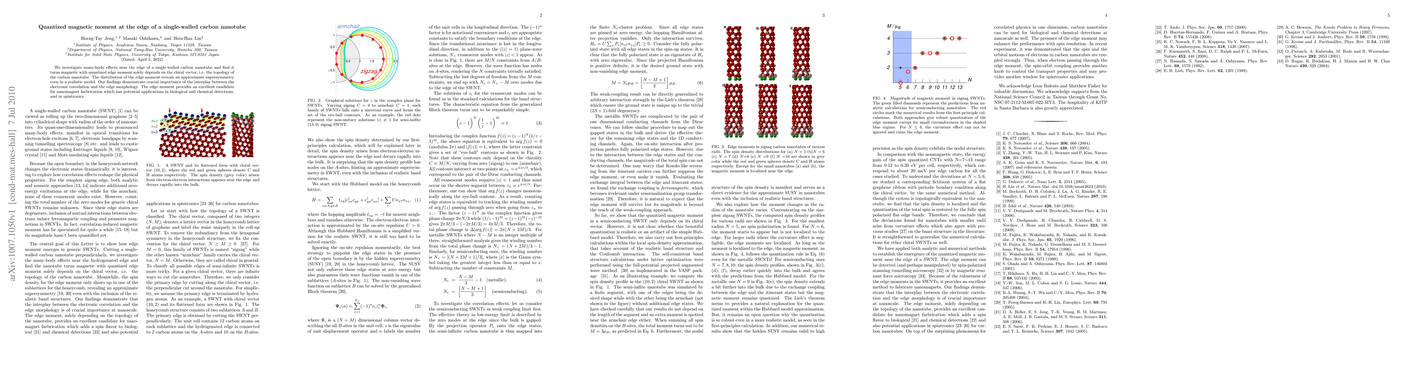 This study reveals that the edge of a single-walled carbon nanotube exhibits a quantized magnetic moment, determined by its chiral vector, showcasing significant many-body effects. The findings suggest the edge moment's potential for nanomagnet fabrication in applications like spintronics and bio/chemical detection.