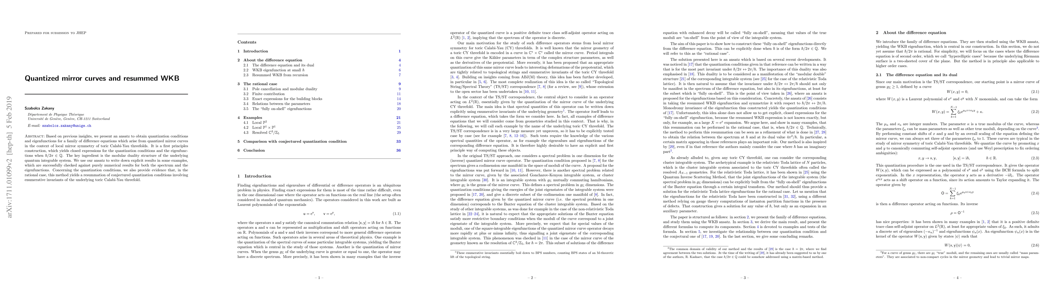 Researchers present a new method to solve quantized mirror curves in Calabi-Yau threefolds, finding closed expressions for eigenfunctions and evidence of resummed WKB conditions that match numerical results.
