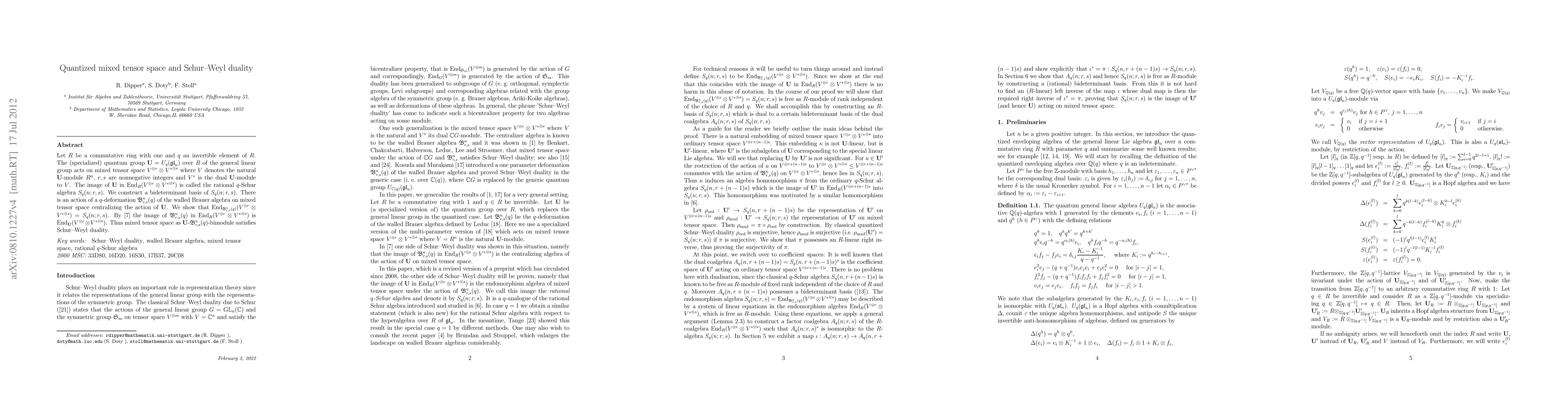 Let $R$ be a commutative ring with one and $q$ an invertible element of $R$. The (specialized) quantum group ${\mathbf U} = U_q(\mathfrak{gl}_n)$ over $R$ of the general linear group acts on mixed tensor space $V^{\otimes r}\otimes {V^*}^{\otimes s}$ where $V$ denotes the natural $\mathbf U$-module $R^n$, $r,s$ are nonnegative integers and $V^*$ is the dual $\mathbf U$-module to $V$. The image of $\mathbf U$ in $\mathrm{End}_R(V^{\otimes r}\otimes {V^*}^{\otimes s})$ is called the rational $q$-Schur algebra $S_{q}(n;r,s)$. We construct a bideterminant basis of $S_{q}(n;r,s)$. There is an action of a $q$-deformation $\mathfrak{B}_{r,s}^n(q)$ of the walled Brauer algebra on mixed tensor space centralizing the action of $\mathbf U$. We show that $\mathrm{End}_{\mathfrak{B}_{r,s}^n(q)}(V^{\otimes r}\otimes {V^*}^{\otimes s})=S_{q}(n;r,s)$. By \cite{dipperdotystoll} the image of $\mathfrak{B}_{r,s}^n(q)$ in $\mathrm{End}_R(V^{\otimes r}\otimes {V^*}^{\otimes s})$ is $\mathrm{End}_{\mathbf U}(V^{\otimes r}\otimes {V^*}^{\otimes s})$. Thus mixed tensor space as $\mathbf U$-$\mathfrak{B}_{r,s}^n(q)$-bimodule satisfies Schur-Weyl duality.