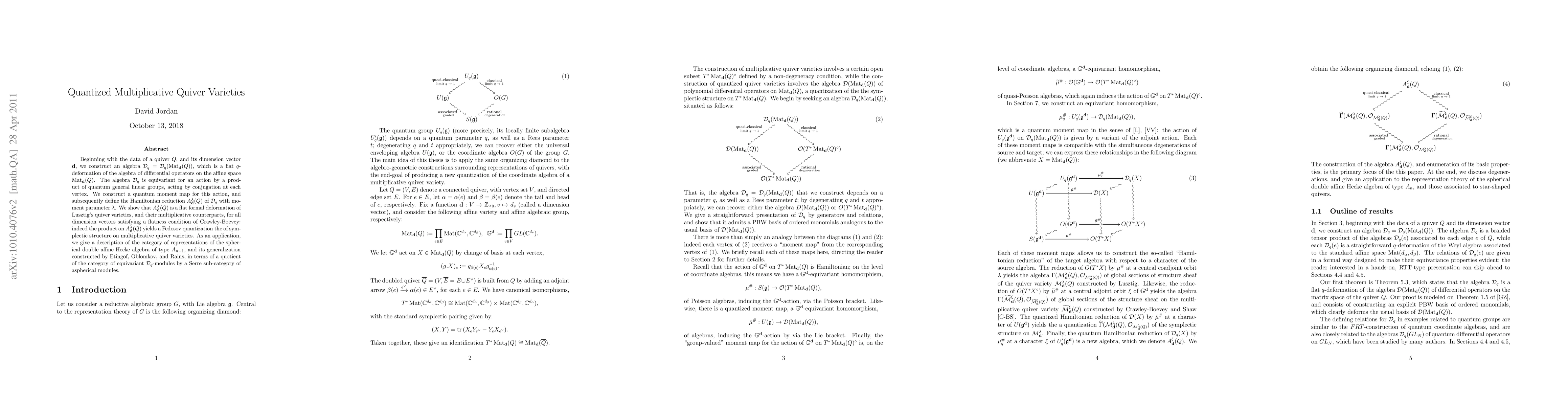 Beginning with the data of a quiver Q, and its dimension vector d, we construct an algebra D_q=D_q(Mat_d(Q)), which is a flat q-deformation of the algebra of differential operators on the affine space Mat_d(Q). The algebra D_q is equivariant for an action by a product of quantum general linear groups, acting by conjugation at each vertex. We construct a quantum moment map for this action, and subsequently define the Hamiltonian reduction A^lambda_d(Q) of D_q with moment parameter \lambda. We show that A^\lambda_d(Q) is a flat formal deformation of Lusztig's quiver varieties, and their multiplicative counterparts, for all dimension vectors satisfying a flatness condition of Crawley-Boevey: indeed the product on A^\lambda_d(Q) yields a Fedosov quantization the of symplectic structure on multiplicative quiver varieties. As an application, we give a description of the category of representations of the spherical double affine Hecke algebra of type A_{n-1}, and its generalization constructed by Etingof, Oblomkov, and Rains, in terms of a quotient of the category of equivariant D_q-modules by a Serre sub-category of aspherical modules.