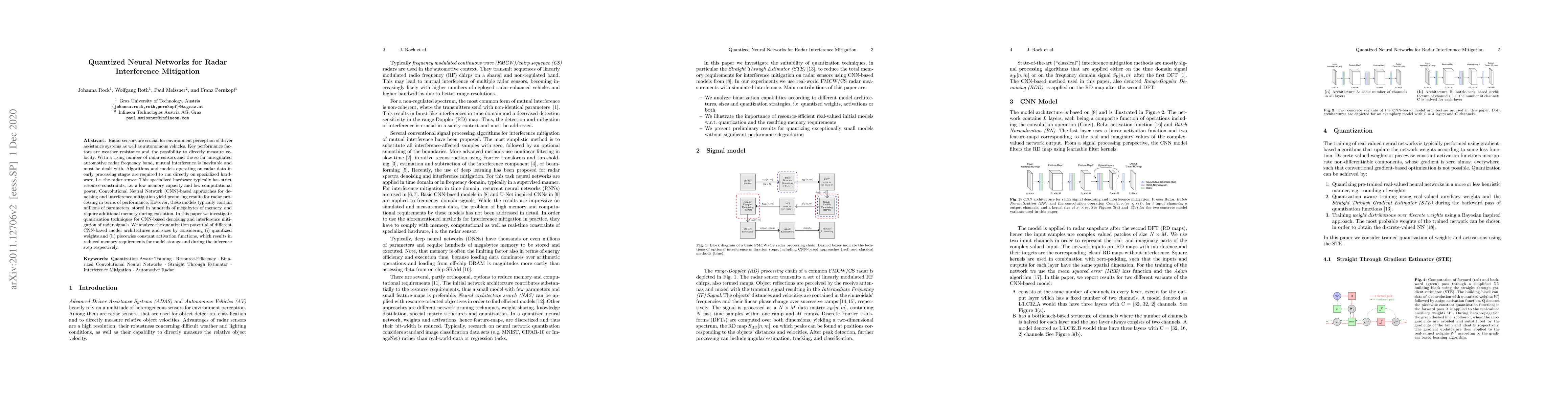 This paper explores quantized neural networks to mitigate radar interference, focusing on reducing memory and computational demands for CNN-based models running on resource-constrained radar hardware. The study investigates quantized weights and piecewise constant activation functions to achieve efficient interference mitigation with minimal resource usage.