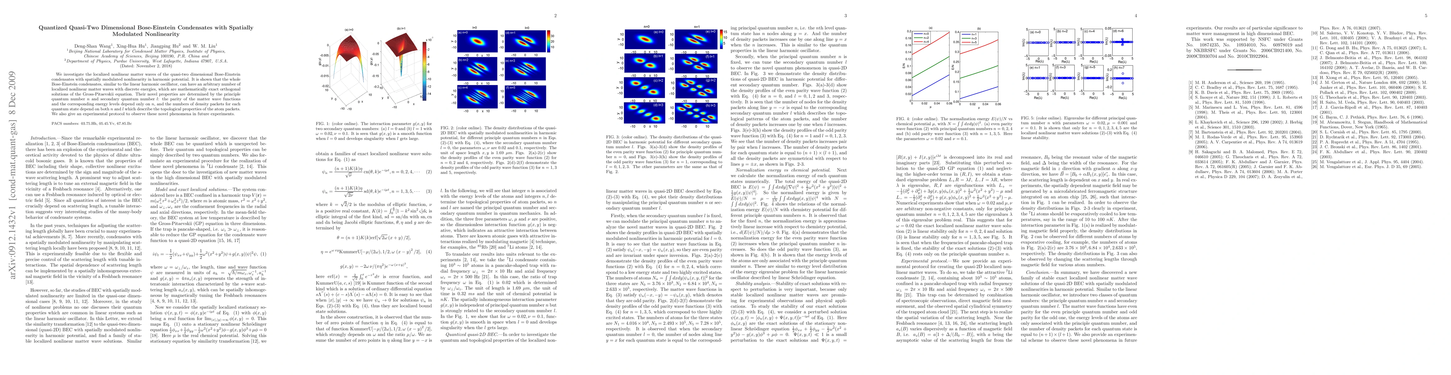 This paper explores localized nonlinear matter waves in quasi-two-dimensional Bose-Einstein condensates with spatially modulated nonlinearity. It demonstrates that these condensates can support an arbitrary number of orthogonal localized waves with discrete energies, determined by quantum numbers n and l, and proposes an experimental protocol for their observation.